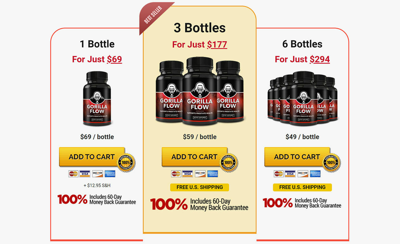 Gorilla Flow is priced at $69 per bottle. However, you can get free shipping and a lower per-bottle price by buying multiple bottles of Gorilla Flow.