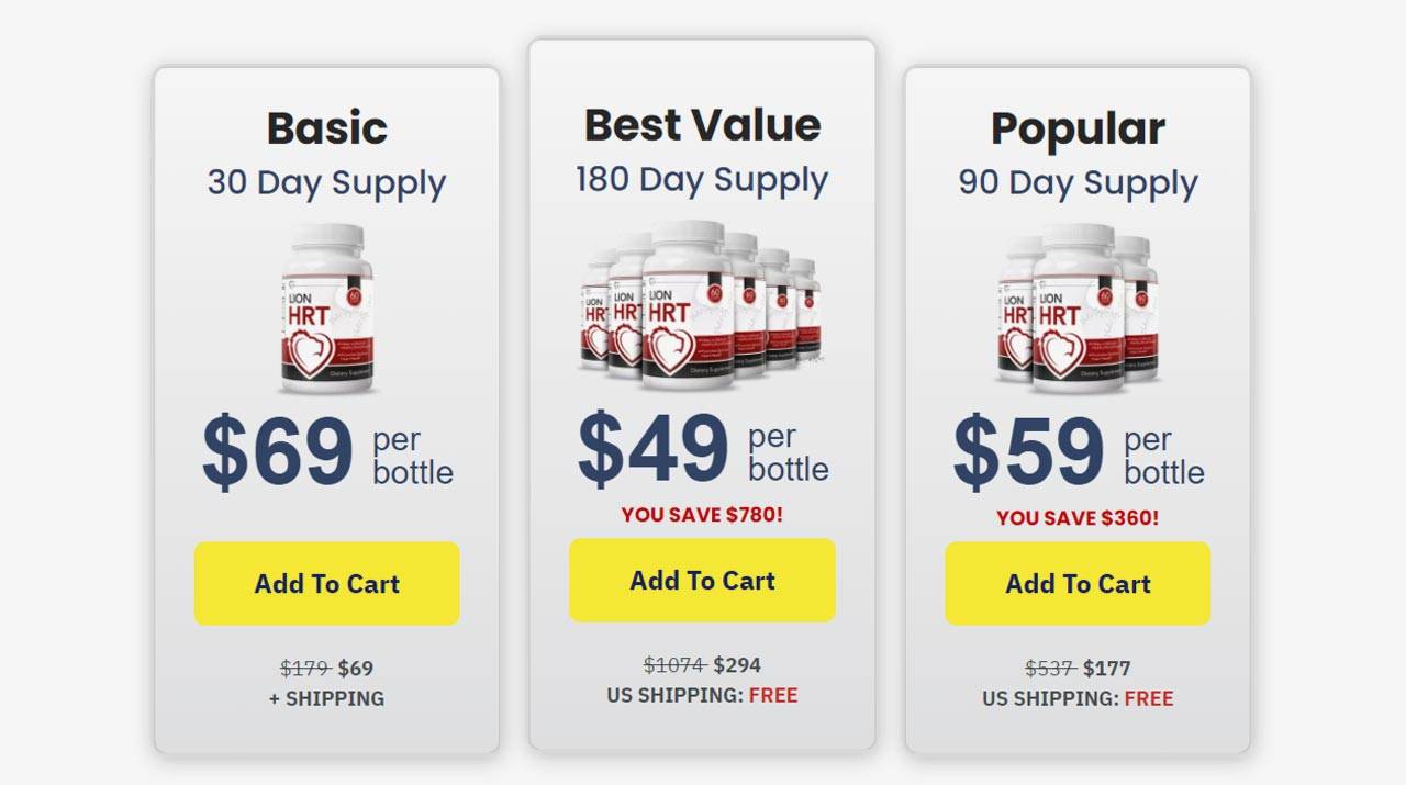 Instead of being offered in stores, the Lion HRT supplement can be found online with the official website. Lion HRT’s normal price is $179, but users can purchase one of the three packages at a much lower cost.