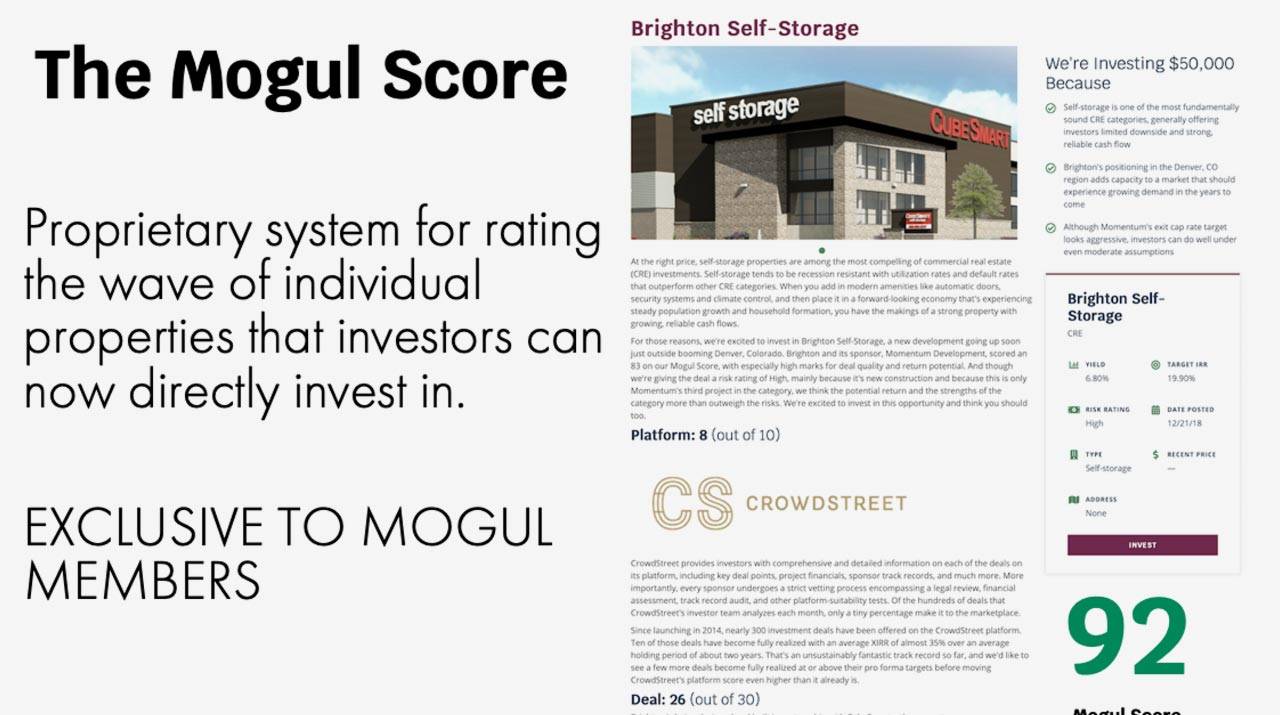 Each property comes with a “Mogul Score” based on Mogul’s proprietary system for analyzing real estate investments. Millionacres sends its team across the country to spot new investment opportunities and refine its Mogul Score system.