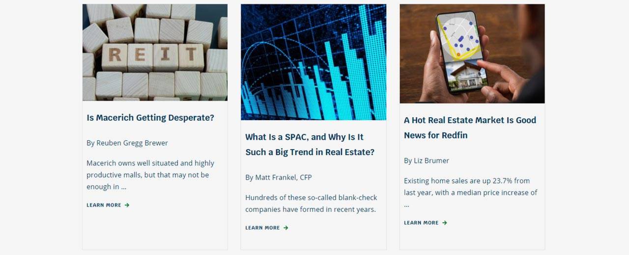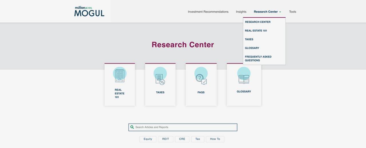 By subscribing to Mogul, you get regular commentary on the state of the real estate industry. You also get tools, guides, and other resources to inform your investment decisions. You get tax research to amplify returns, along with specific recommendations for real estate equities, REITs, and individual commercial real estate deals.