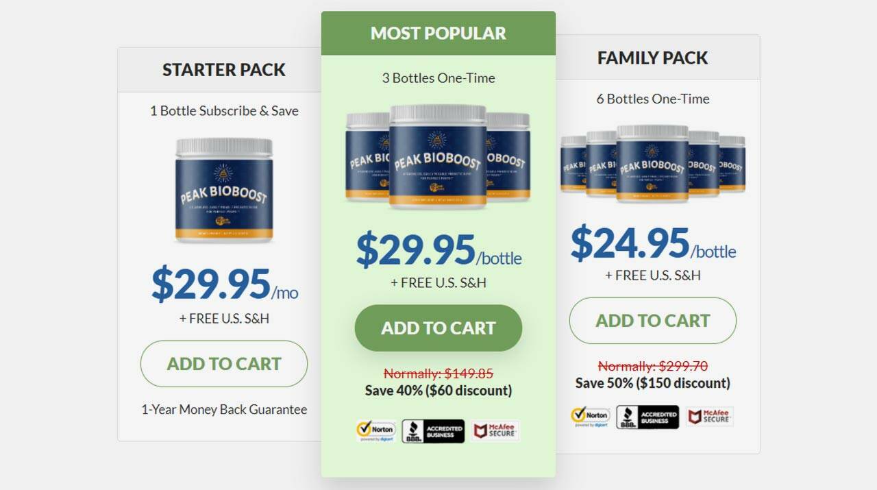 For consumers that want to try out Peak BioBoost for themselves, there are three different packages that they can order: