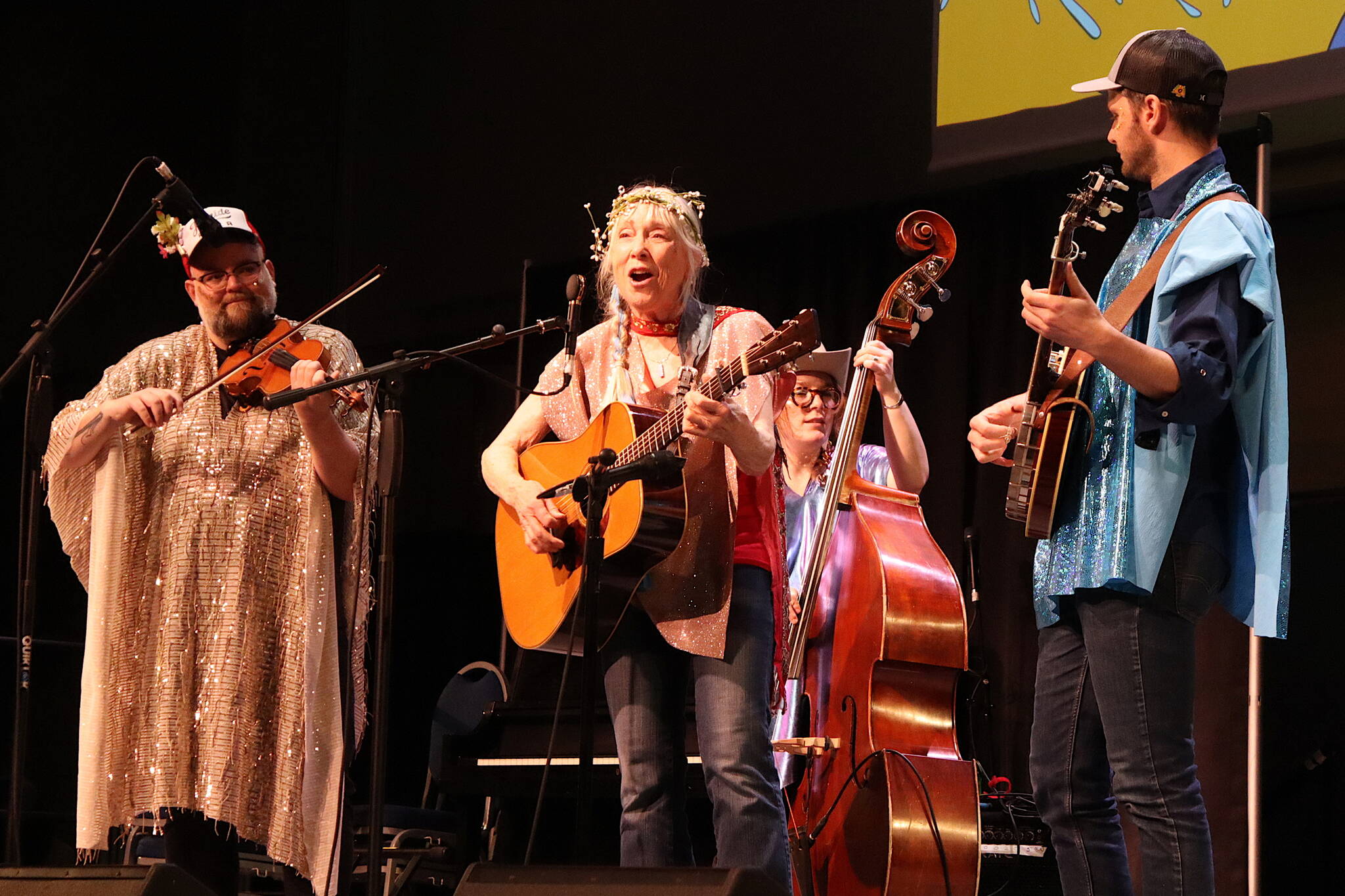More than 130 acts performed music ranging from guitar soloists to large eclectic costumed ensembles. The festival began Monday with the Alaska Youth Choir singing the state song and featured as the penultimate act guest artist Laurie Lewis — a California bluegrass musician for nearly four decades who participated in performances and workshops all week — doing a nearly 90-minute concert (compared to the 15-minute sets for most acts) with her band The Right Hands.