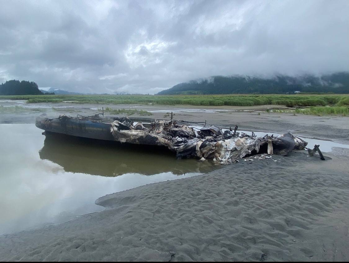 Initially unable to get through the wetlands to the fire from the airport side, Juneau Police Department officers were eventually able to get close by hiking in from North Douglas Highway, said Lt. Krag Campbell in a phone interview.