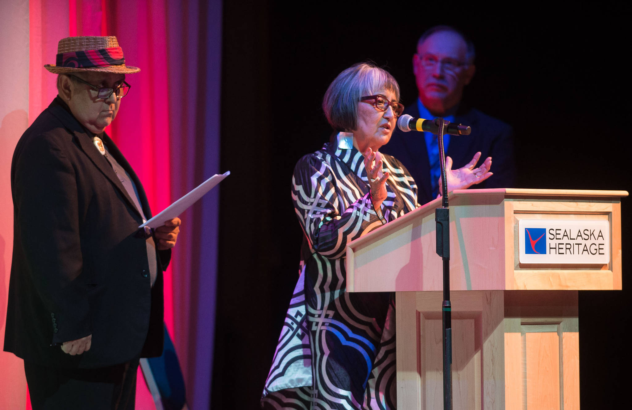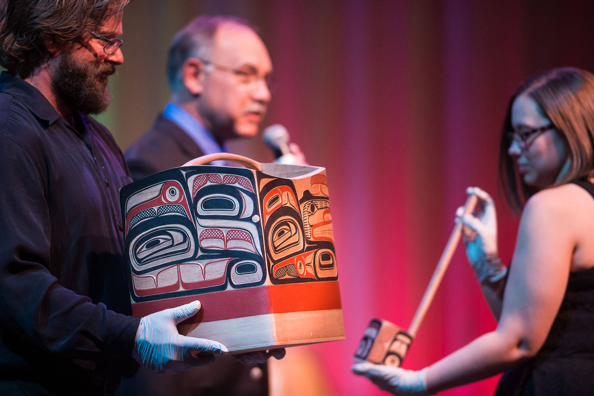 Of course, this takes resources. Enter the fundraiser. Three years ago, SHI organized the first Tináa Art Auction to help pay for the construction of the Walter Soboleff Center in downtown Juneau. This time around, proceeds kicked off a new endowment specifically earmarked to fund art, language, culture and education programs such as mentor-apprenticeships, workshops and artist-in-residence studies.
