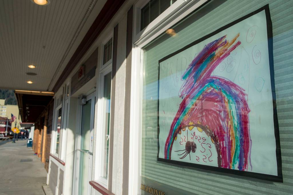 The art walk is a collaboration among Southeast Alaska Association for the Education of Young Children, Juneau Economic Development Council and the Downtown Business Association. It helps businesses comply with a window-covering ordinance, display art made by local children and raise money for Dolly Parton’s Imagination Library.