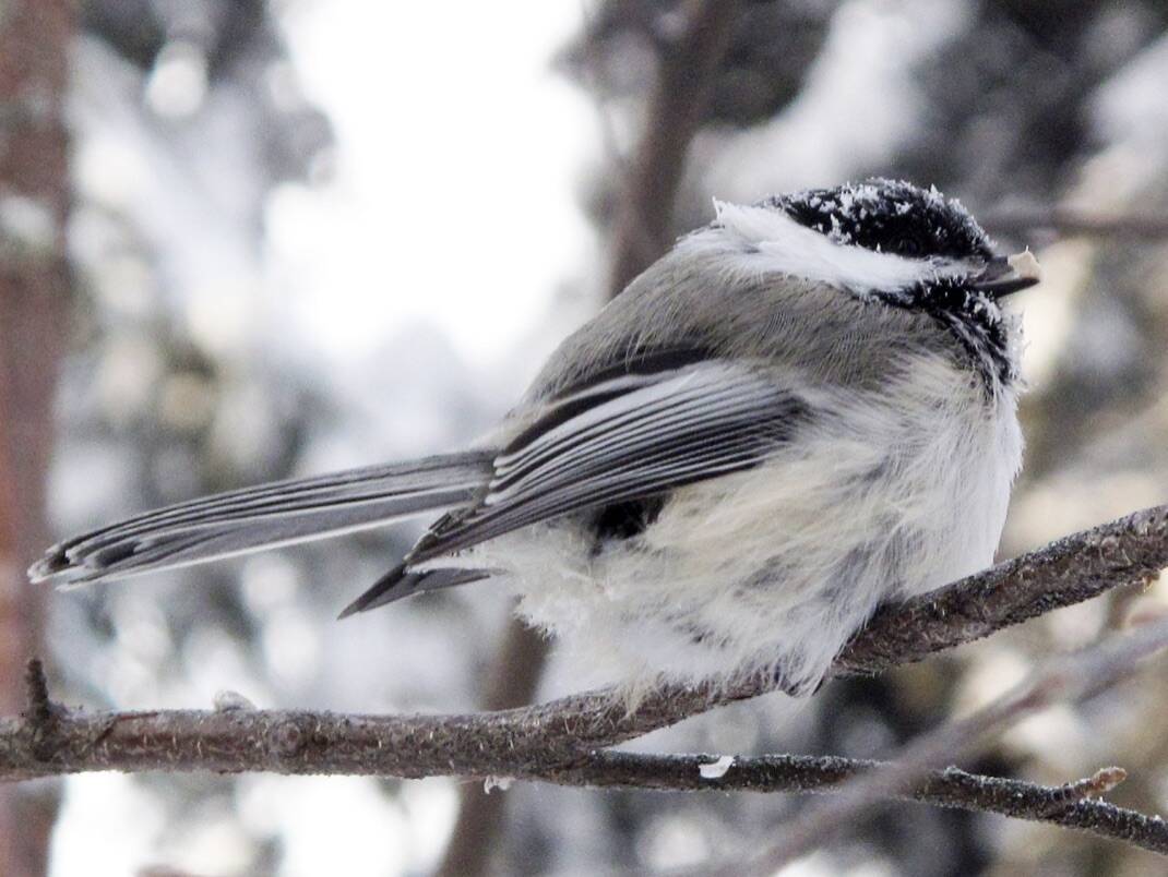 People had told her about chickadees flying under the eaves of their homes at dusk, and Sharbaugh had seen chickadees with bent tails at her feeder in the morning; this suggested they crammed their tiny bodies somewhere to escape the deep cold of the night.