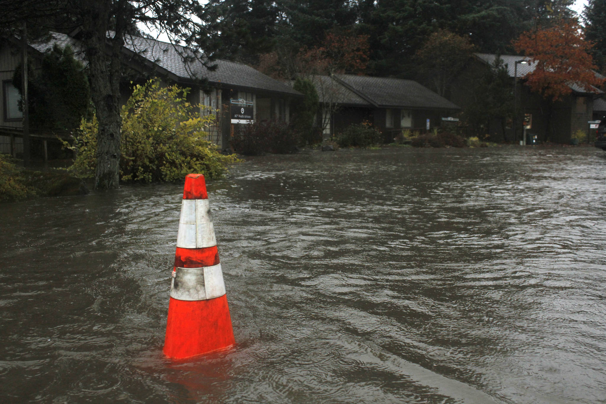 Dr. Tom Gundelfinger has seen floods like this before and spoke calmly as the rain continued to fall outside. There was a much worse flood in 1983, he recalled, when his young daughter watched with delight as salmon swam by the office’s stoop. As of noon Friday, nobody at Valley Chiropractic had spotted any fish swimming by.