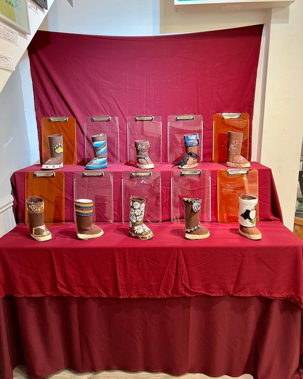 Boots and bid sheets will be displayed on the entry wall to the gallery. Bidding will continue throughout the month and ends on March 30 at 5 pm. There will be a live Facebook feed to share the winners at that time.