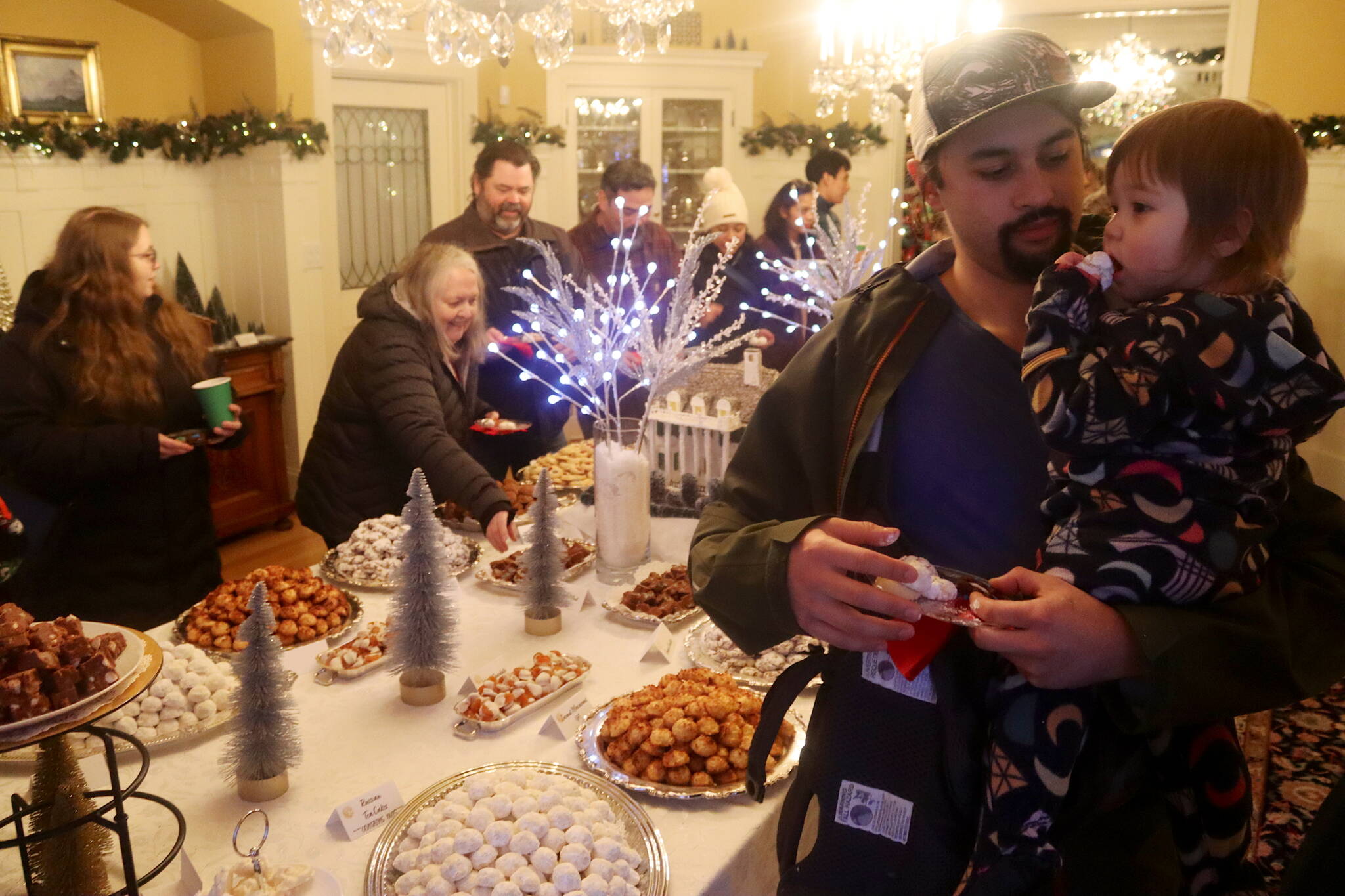 Another visitor returning for the first time in many years was James Cheng, who was carrying his 1-year-old daughter Gwen past the cookie spread and then along a tour of the other rooms on the ground floor of the mansion. He said he’s been to perhaps five to 10 of the holiday open houses, but the most recent was about 15 years ago and it was as a participant.