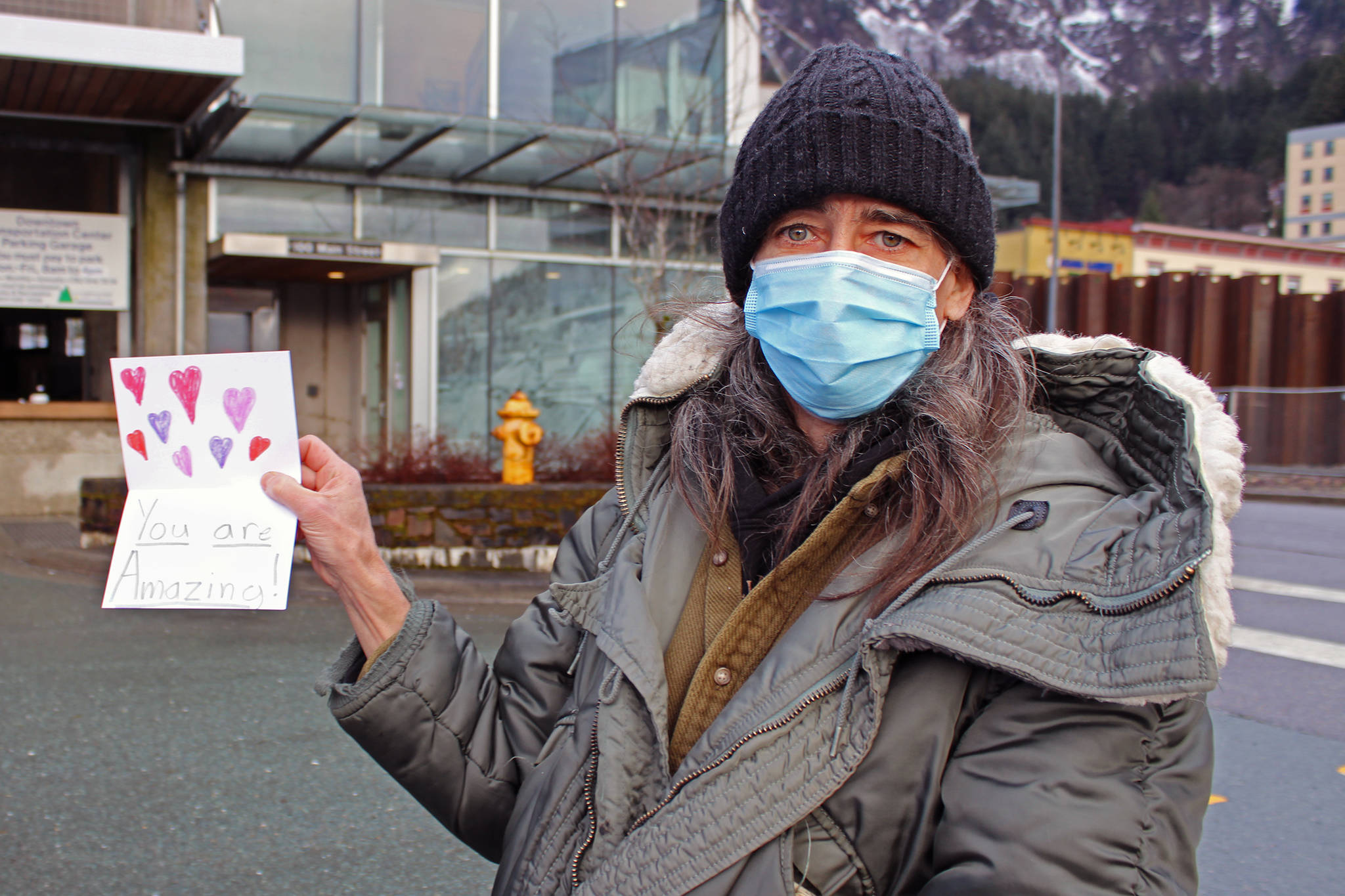 Monoian was among the hundreds who received Thanksgiving meals thanks to the combined efforts of the Salvation Army, the Glory Hall and the United Way of Southeast Alaska are working with the Hangar on the Wharf, T.K. Maguire’s and Bocca al Lupo, and she was particularly pleased by a hand-decorated card that came with a meal.