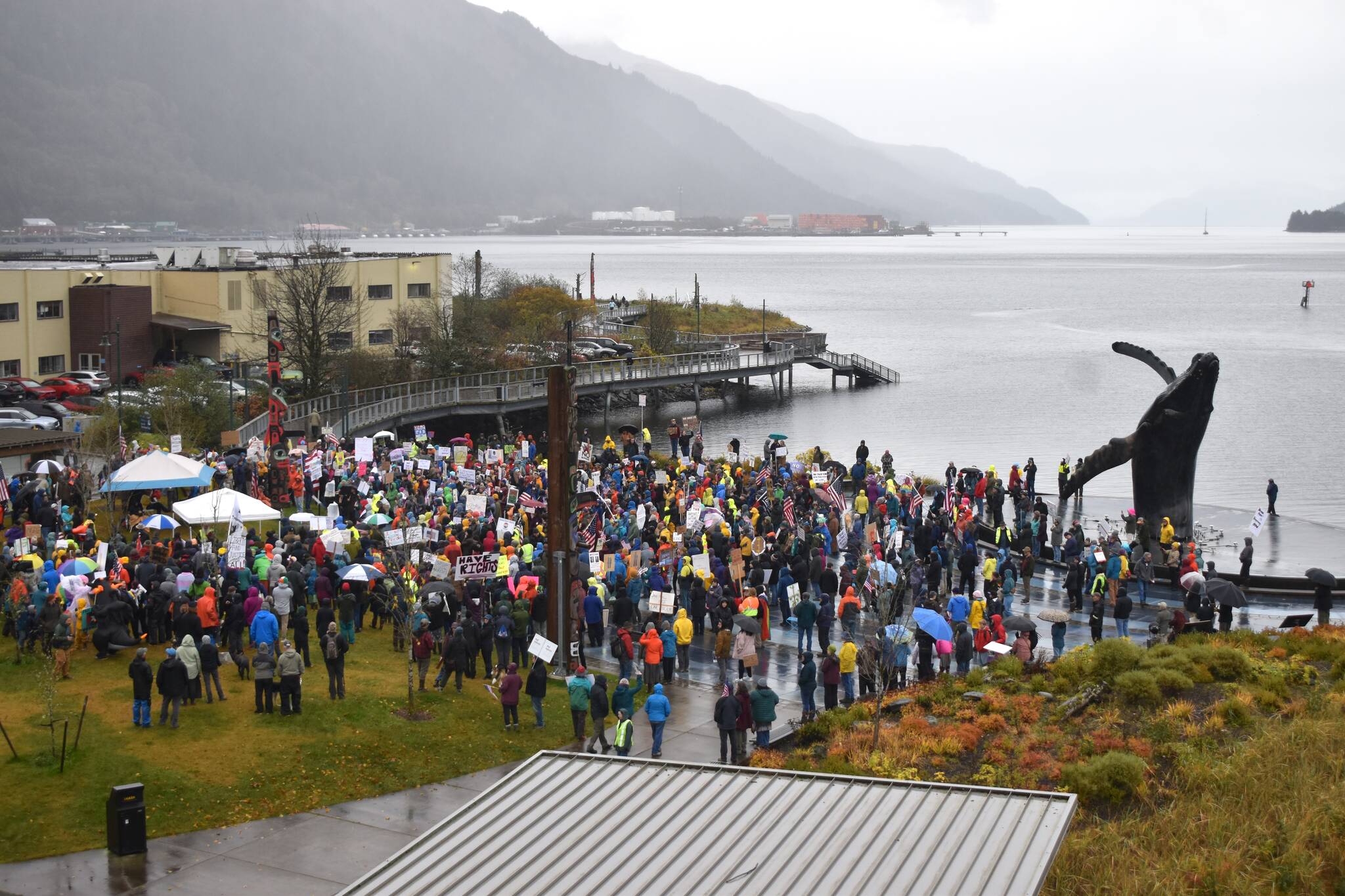 Local organizers Juneau Indivisible, Juneau for Democracy, and ReSisters estimated as many as 2,000 people attended, drawing similar crowds to the Juneau “No Kings” protest in June.