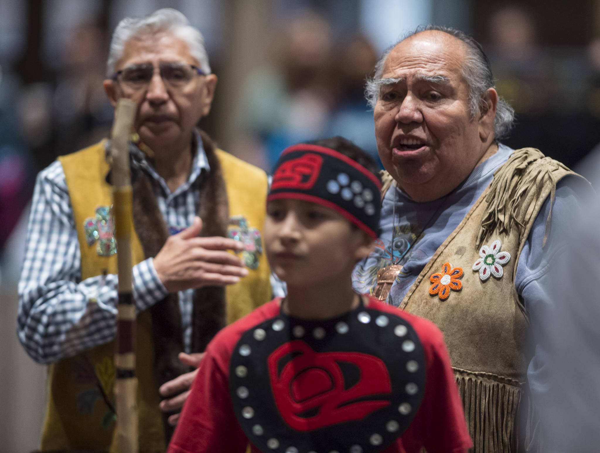 There were several infants in the crowd at Centennial Hall. That included 6-week-old Chooneit Buller, son of Yakutat Thlingit Tribal Council President John Buller. The Buller boys were joined by John’s wife, Kim.