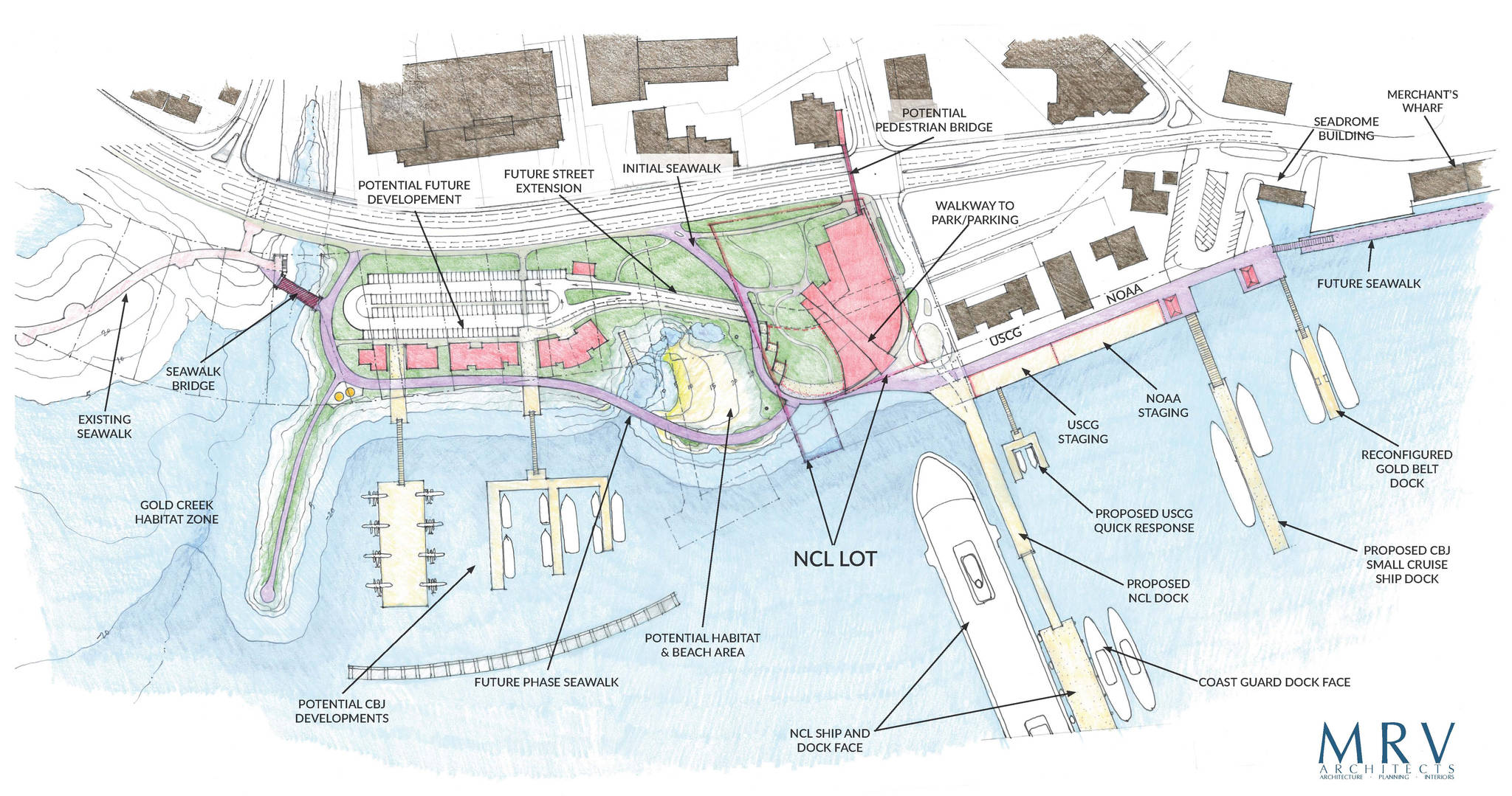 Completing the seawalk from Mayor Bill Overstreet Park was at the top of the list for possible public amenities, said Paul Voelckers with MRV, as was the proposed Alaska Ocean Center and a park with green space. All renderings are purely conceptual at this point Voelckers said, and are subject to change depending on feedback.