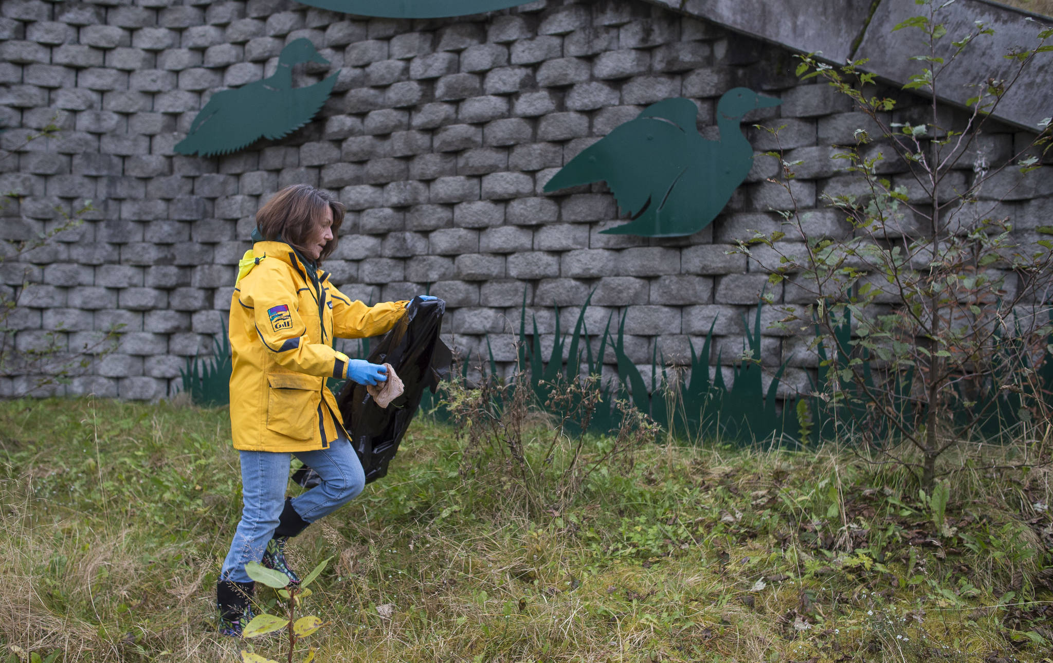 On the beach a few feet away from the ducks, Leticia McRae shoves a handful of plastic bags and a crushed Pabst Blue Ribbon can into a large trash bag. Juneau’s natural beauty is apparent on days like this, and McRae is doing her part to keep it that way.