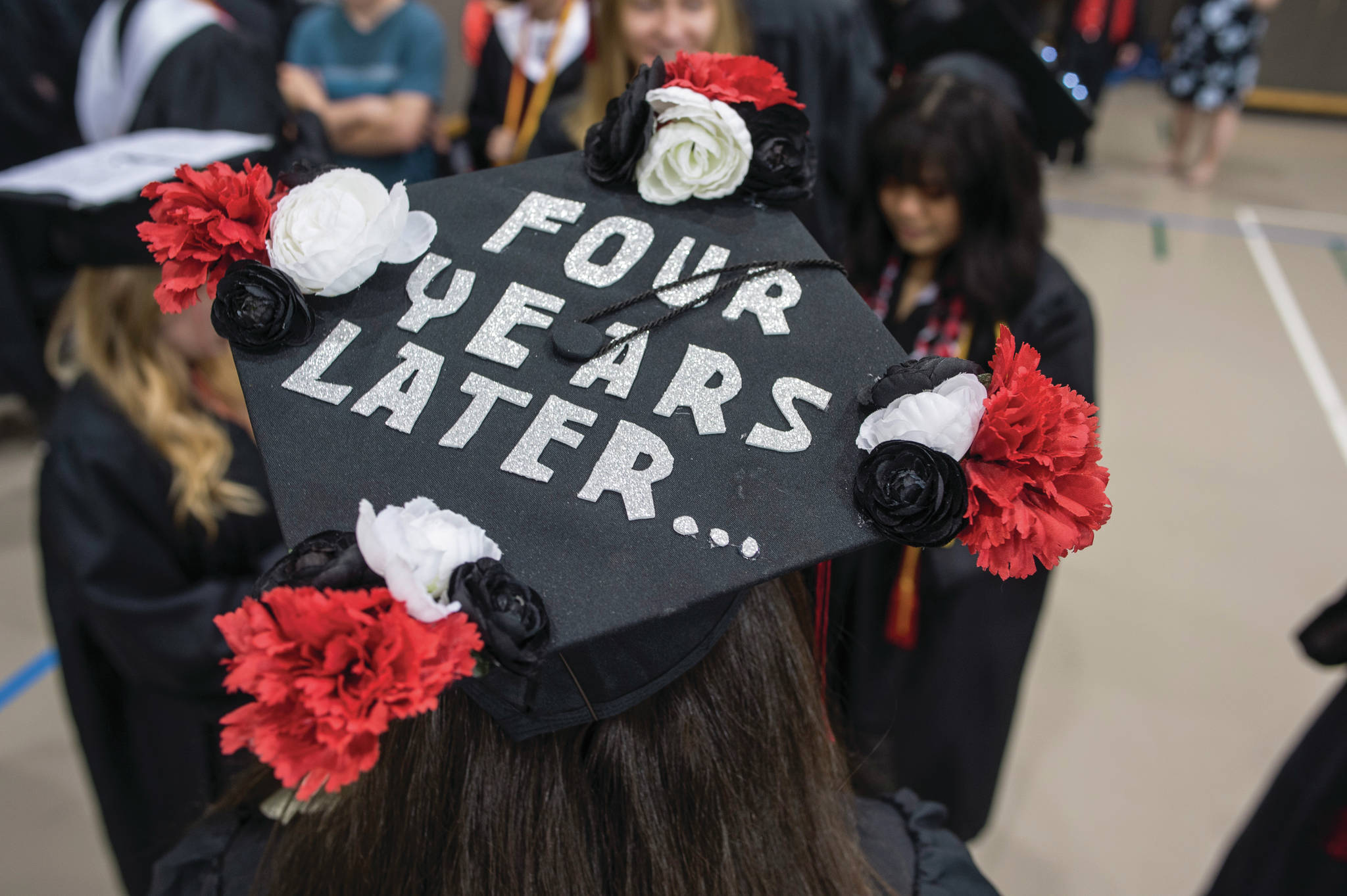 Nicole Woodland with her decoration hat ready for Juneau-Douglas High School: Yadaa.at Kalé graduation.