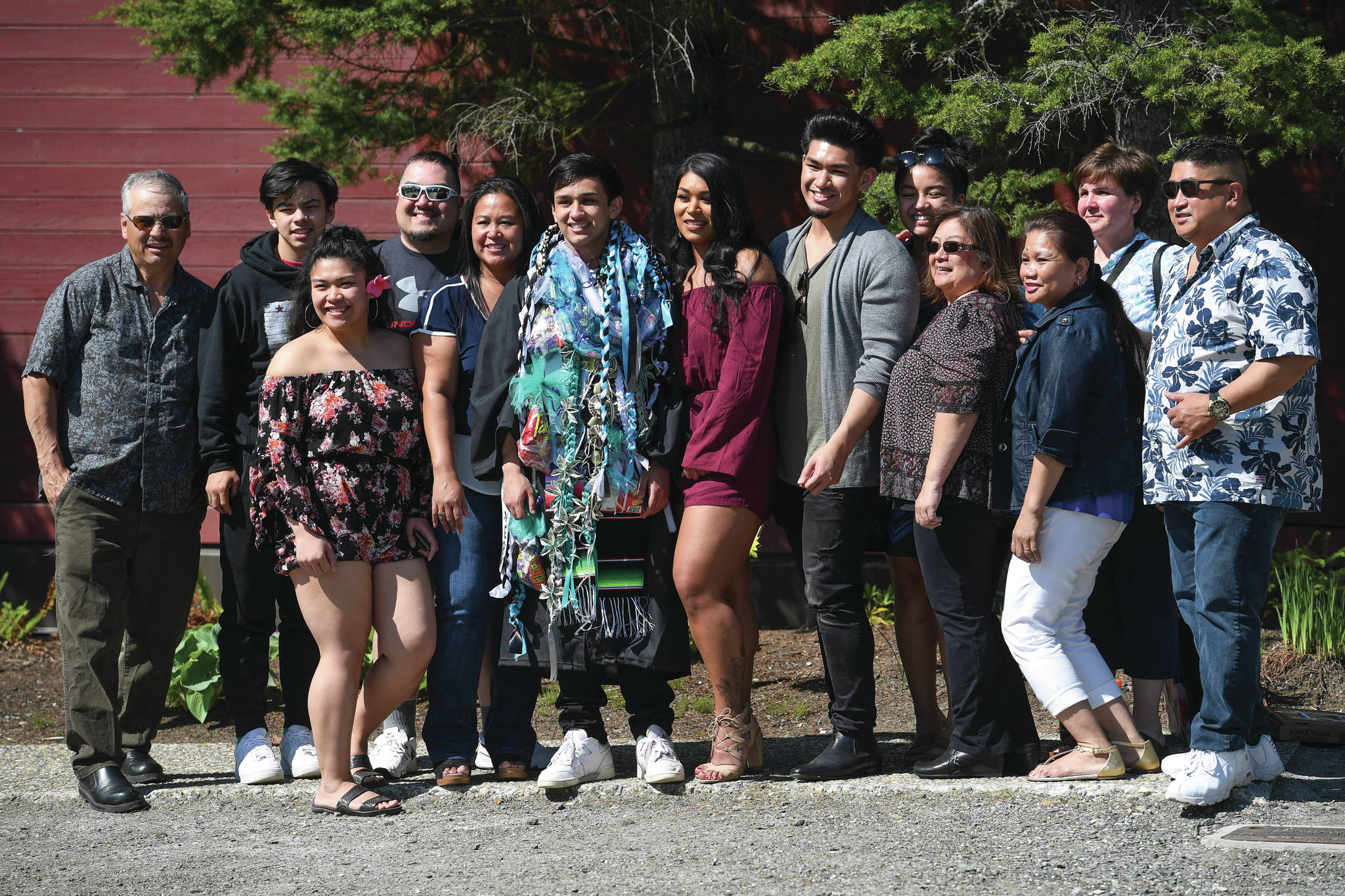 Bernard Yadao gets his diploma and numerous treats from his family during Thunder Mountain High School graduation on Sunday.