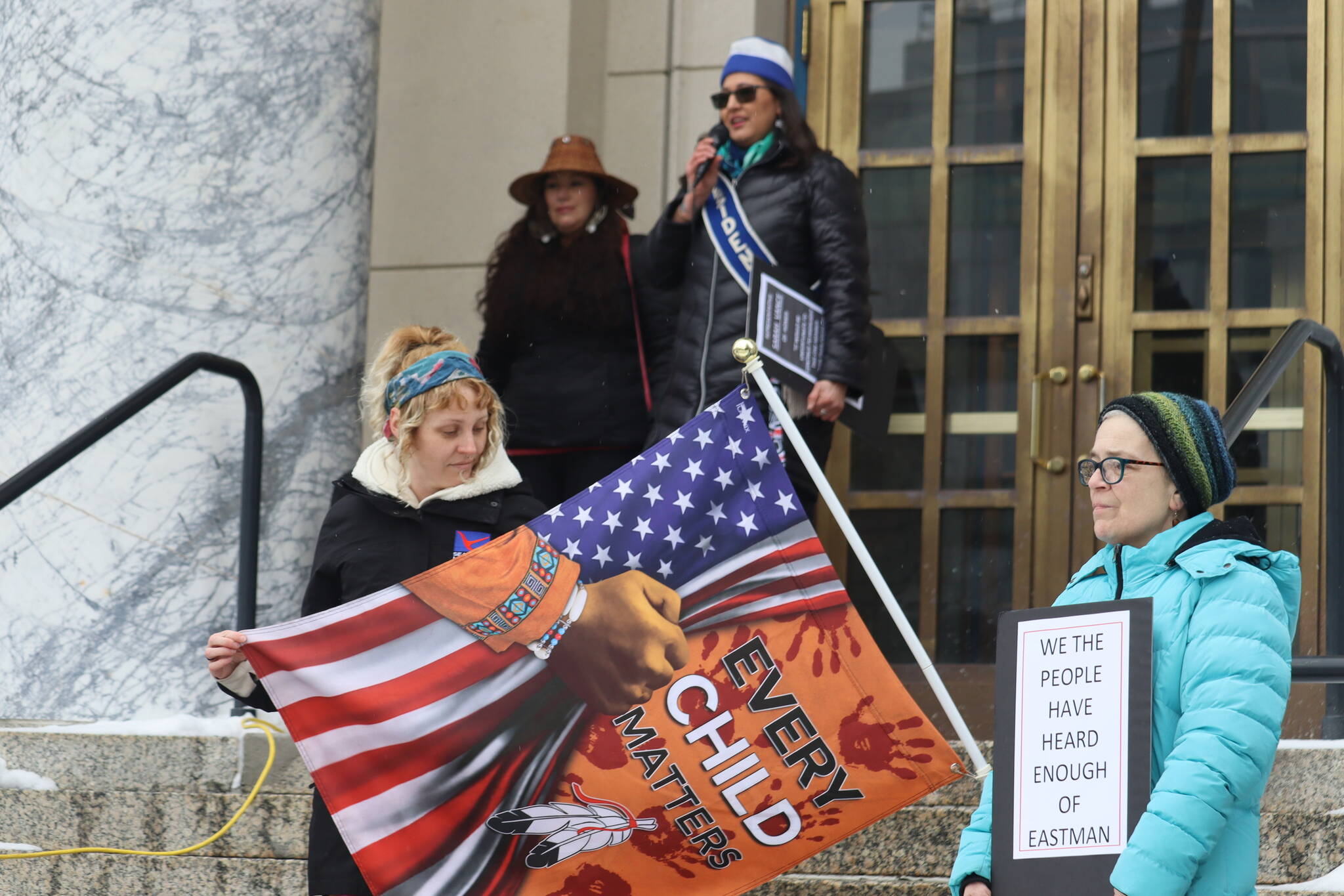 Yolanda Fulmer, a Juneau resident who said she is “representing Indigenous matriarchs,” told the protesters “if David Eastman doesn’t like the environment that has been created for us he needs to change it.”