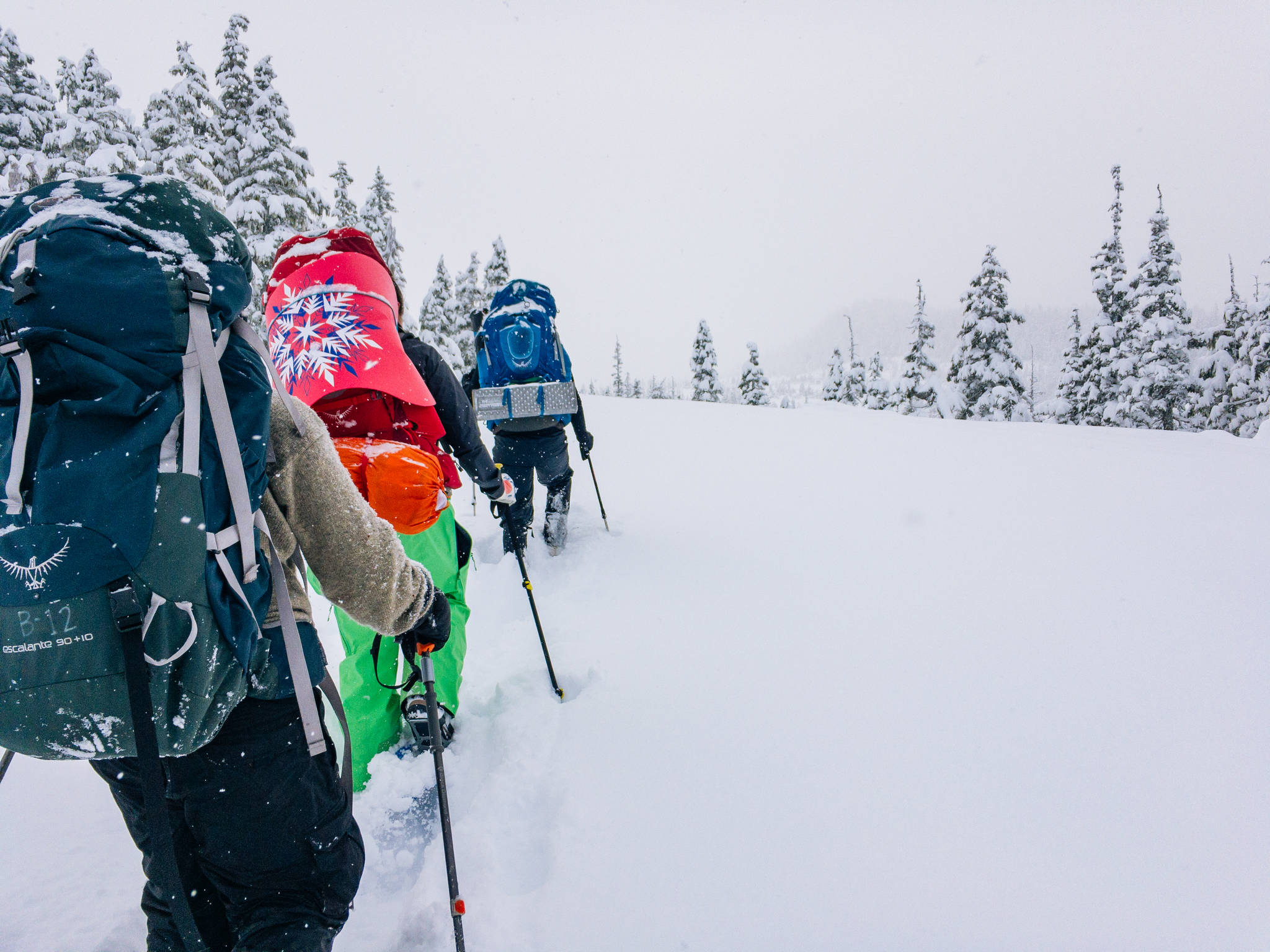 Our UAS Outdoor Studies Program took to the Tongass on Nov. 18 to test our winter backcountry navigation skills. We left from university housing along Snowmachine trail up to Spaulding Meadows. We broke trail along Lake Creek, snowshoed through the meadows, and ended our journey at Peterson Lake the next day. Using a compass and a topographic map, we hiked through the blinding white forest. Carrying a 50 lb pack on snowshoes is a pain, but the landscape was spectacular. Sun was actually shining a little thru an overcast sky, The night was cold but filled with stars. My toes are still frozen. That will teach me to wear the wrong shoes. Playfully, we body checked the snow covered spruce and hemlock trees so it to dumps on the person behind. We camped on frozen muskeg, eating freeze-dried food. All much more fun than it sounds.