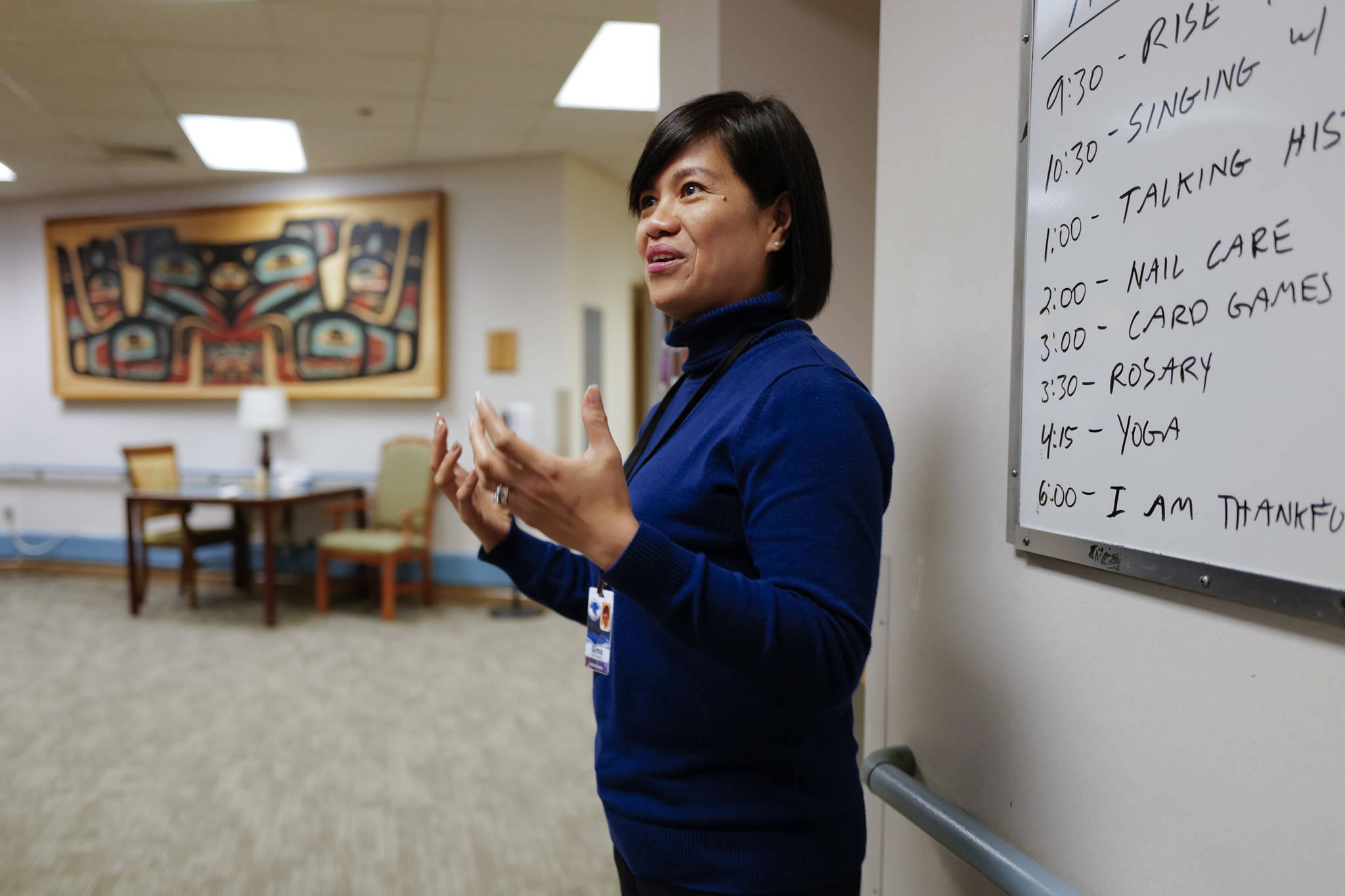 “We’re very well taken care of, there’s no doubt about that. Our CNAs (Certified Nursing Assistants) are just superb,” said Katie Hursh, who lives at the Juneau Pioneers’ Home with her husband. Hursh said the only reason she’s in the Pioneers’ Home is because of her husband who has Alzheimer’s disease.