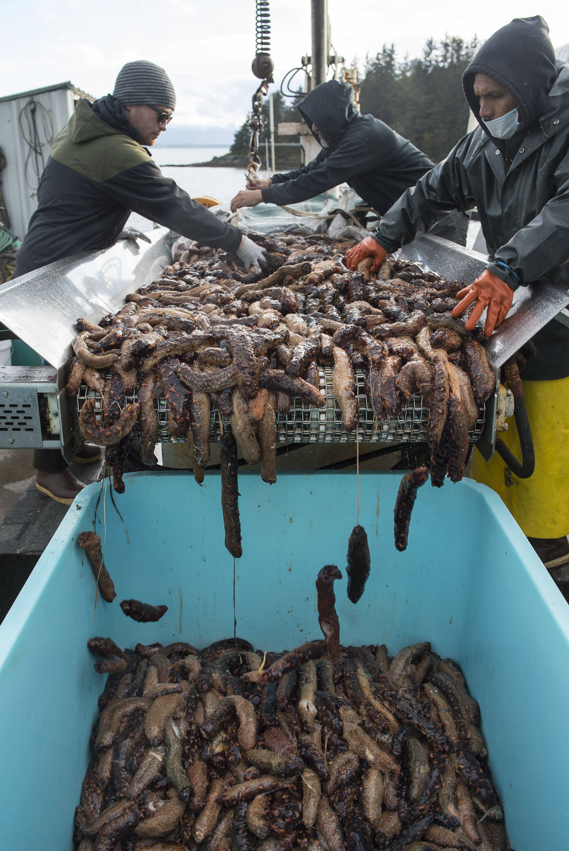 You won’t find sea cucumbers on many Alaska dinner tables, but this time of year, the animal is a boon for fishermen and processors. Prices for their skins will sell for between $20 and $30 per pound this season, Segal said, making it one of AGS’ most expensive products on a per pound basis.