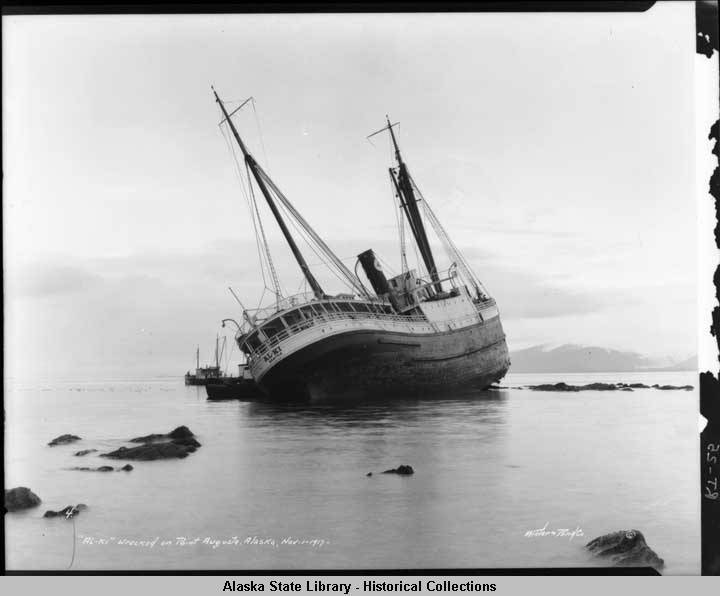 A well known Gold Rush vessel, the wooden steamer Al-Ki, was sailing from Juneau to Sitka when it ran aground during a storm on Nov. 1, 1917 near Point Augusta, on Chicagof Island about 26 miles southwest of Juneau.
