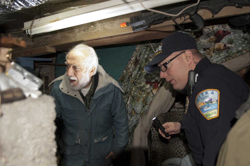 Sitka police arrested a man wanted on criminal warrants Wednesday after finding him hiding in what they called “an elaborate tunnel system” under a trailer at Vitskari Trailer Court.