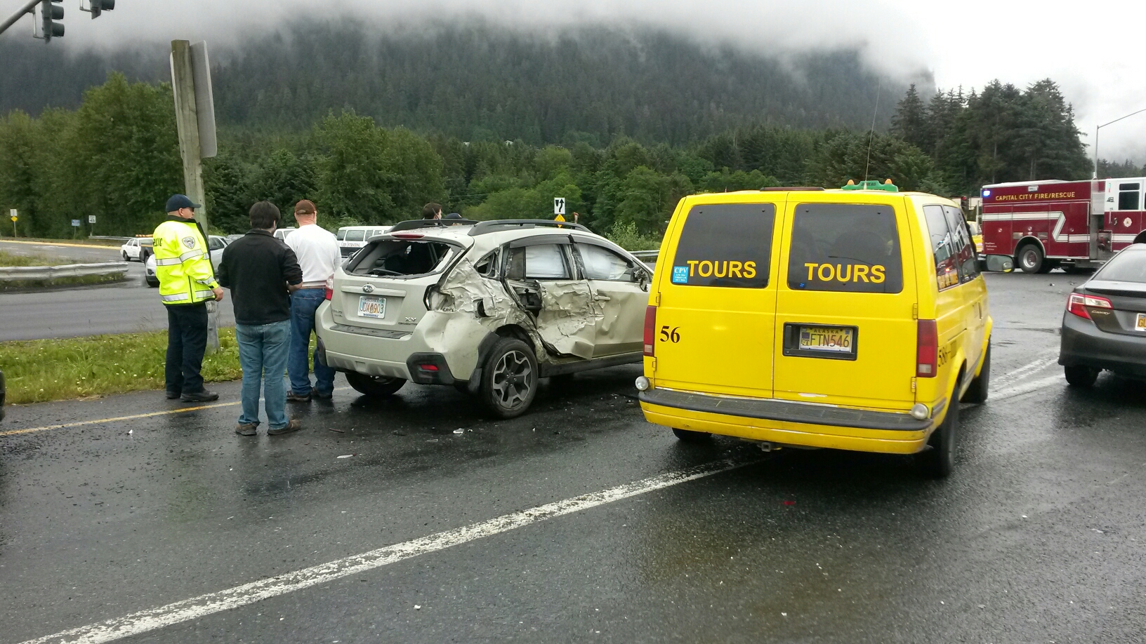 Three vehicles collided Tuesday morning at the intersection of Egan Drive and Vanderbilt Hill Road. Two people were taken to the hospital with non-life threatening injuries, according to a Juneau Police Department news release.
