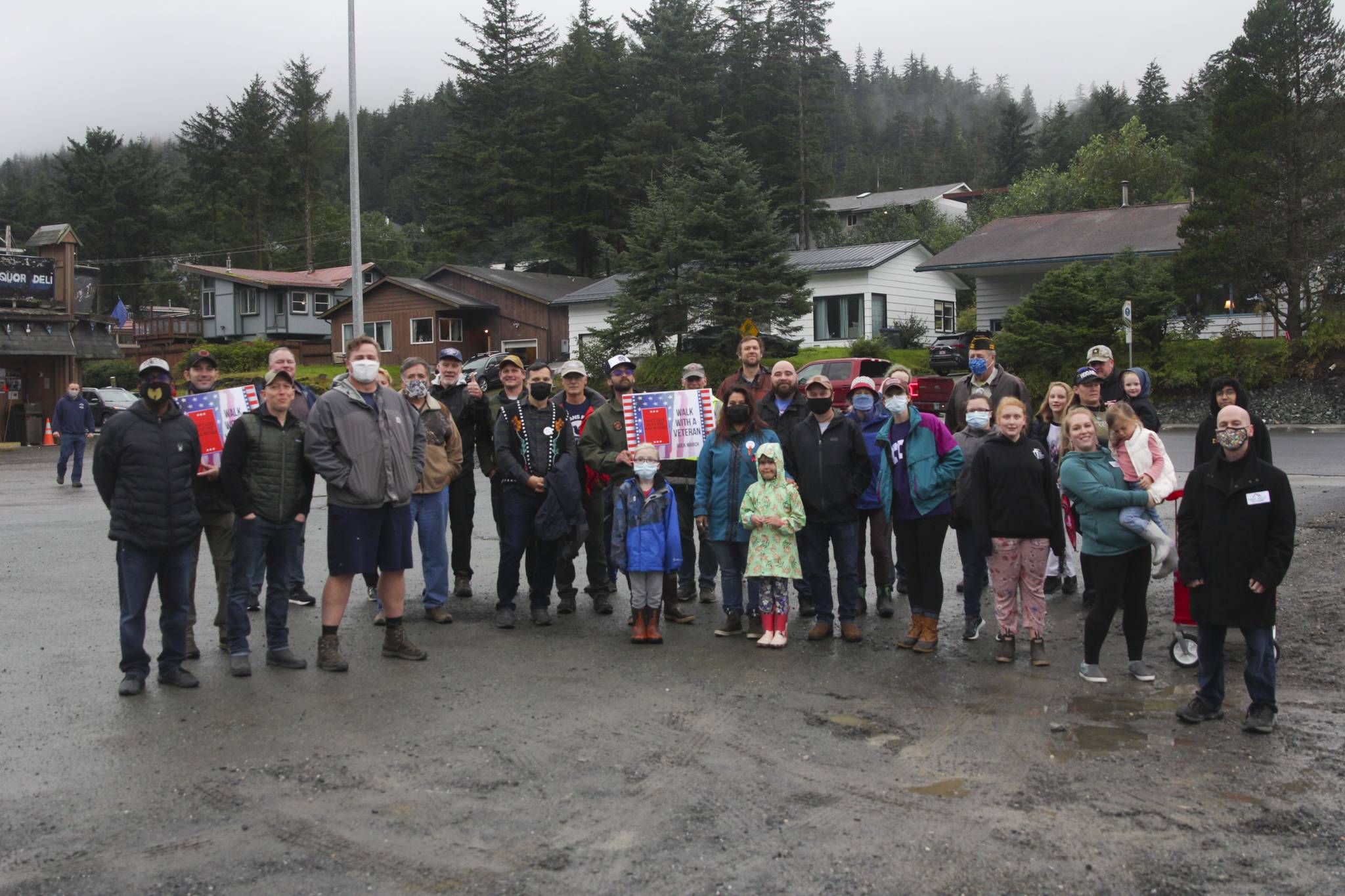 Walk with a Vet, organized by Together With Juneau Veterans, attracted dozens who walked through a drizzly afternoon, drivers beeped and slowed to wave as they passed.