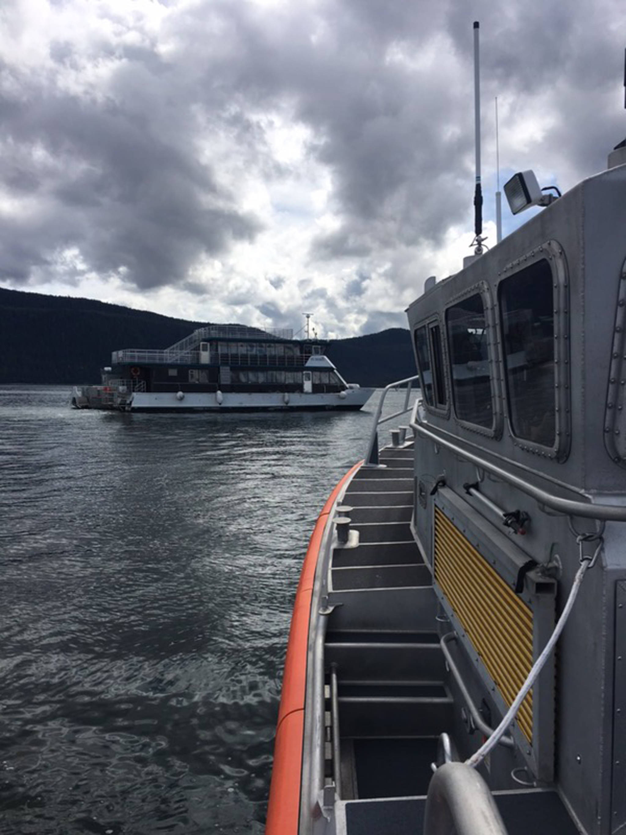 The St. Maria, an Allen Marine vessel, was watching marine mammals when it ran aground on a rock at Eagle Reef, north of Juneau in Favorite Channel, a body of water on the mainland Lincoln Island at about the latitude of the Shrine of St. Thérèse. The USCG received the report at about 10 a.m. Wednesday, USCG spokesperson Nicholas Capuzzi said.