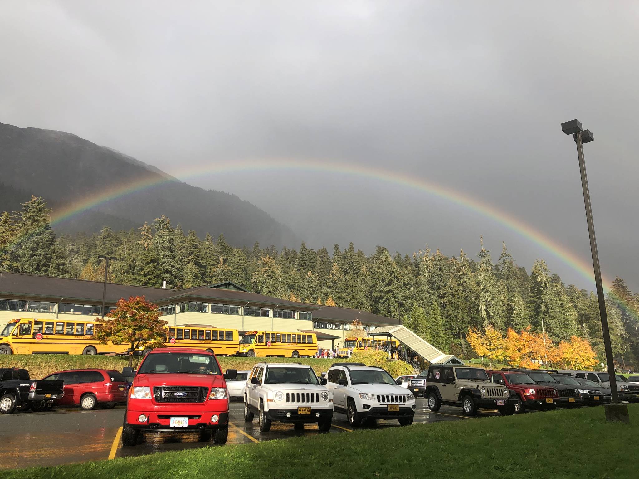 A rainbow shines over Dzantik’i Heeni Middle School on Friday, Oct. 11, 2019. (Courtesy Photo | Jennifer Stiles)