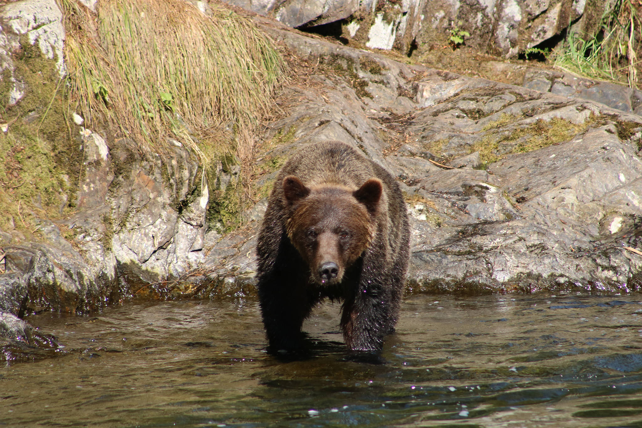 A brown bear fishes for salmon in Sweetheart Creek south of Juneau in August 2019. (Courtesy Photo | Dr. Tracy Ward)