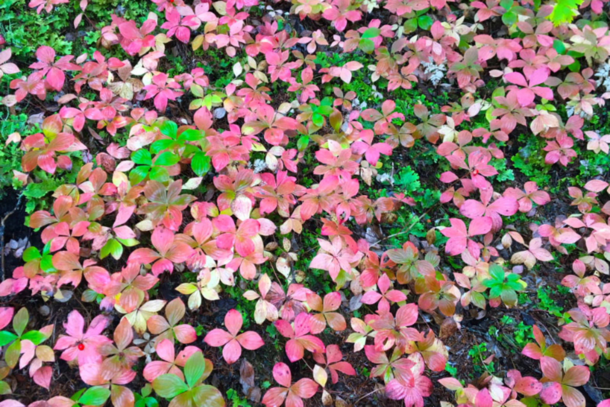 Autumn dwarf dogwood leaves illuminate a hillside with a rosy glow along the Blue Mussel Cabin Trail on Oct. 2, 2019. (Courtesy Photo | Denise Carroll)