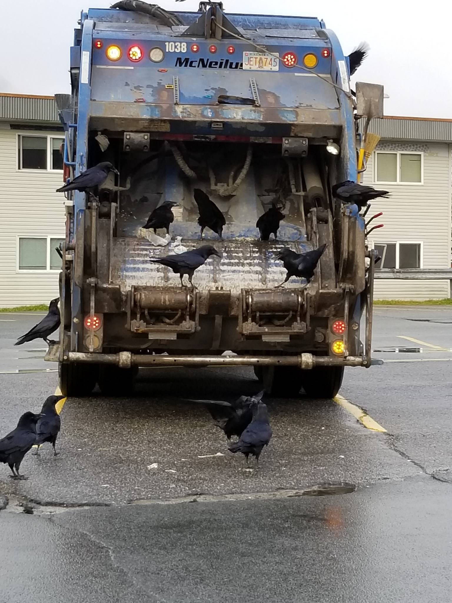 Ravens scavenge for food at Foodland IGA in downtown Juneau, Monday, Oct. 28, 2019. (Courtesy photo | Betty Marriott)