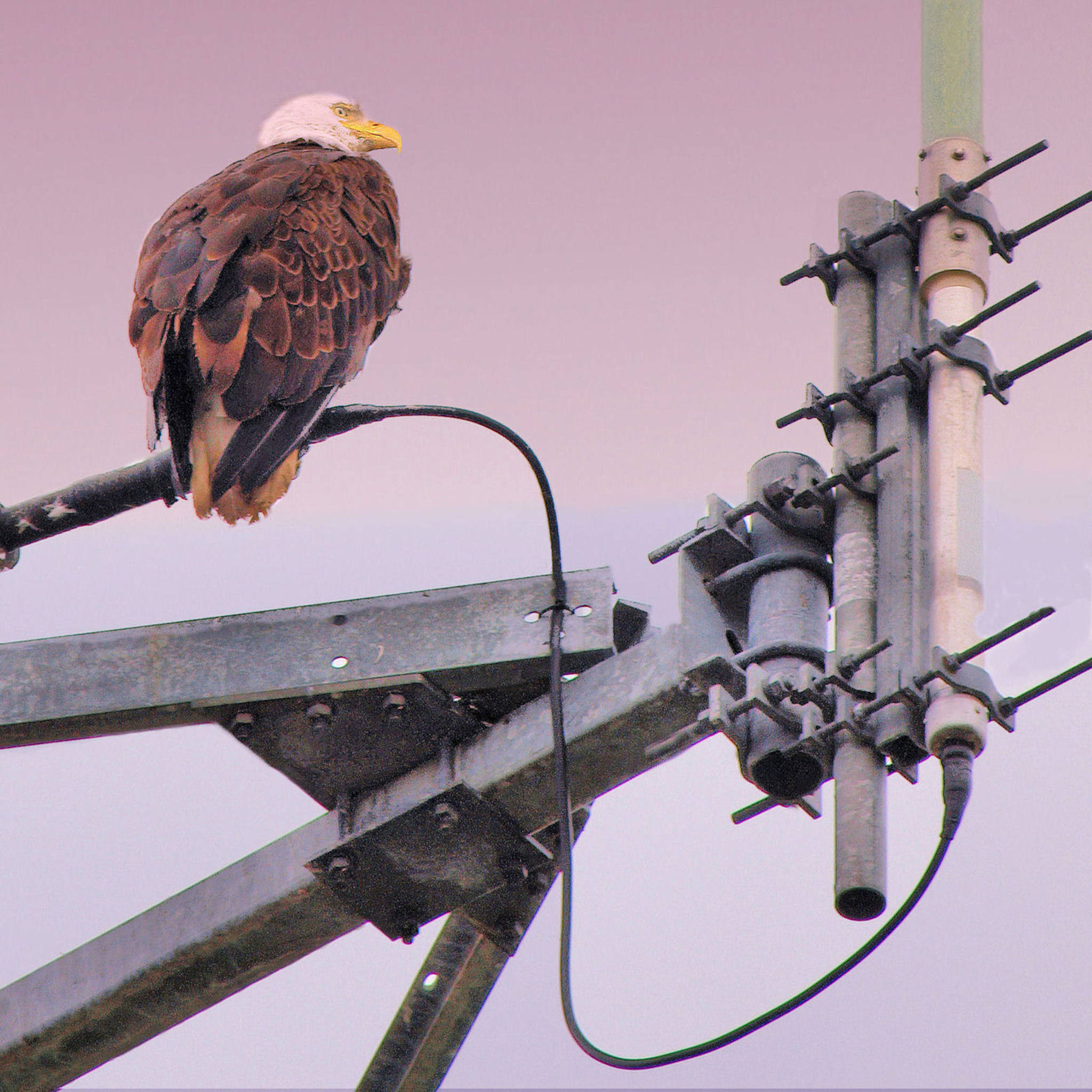A bald eagle perches on a cell phone tower on the Homer Spit in summer 2016. (Courtesy Photo | Charles Baxter)