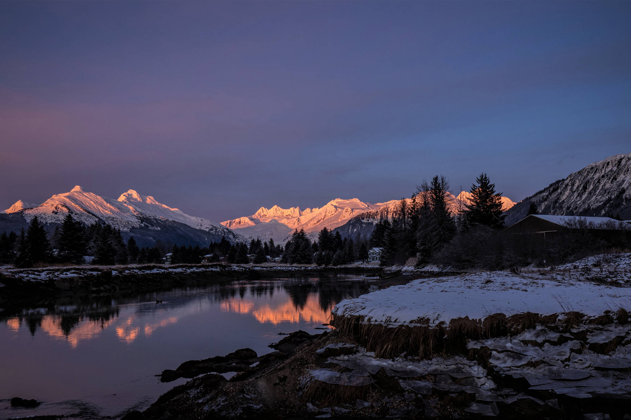 Courtesy Photo | Janice Gorle Alpenglow-illuminated mountains reflect off the Mendenhall River on Sunday.