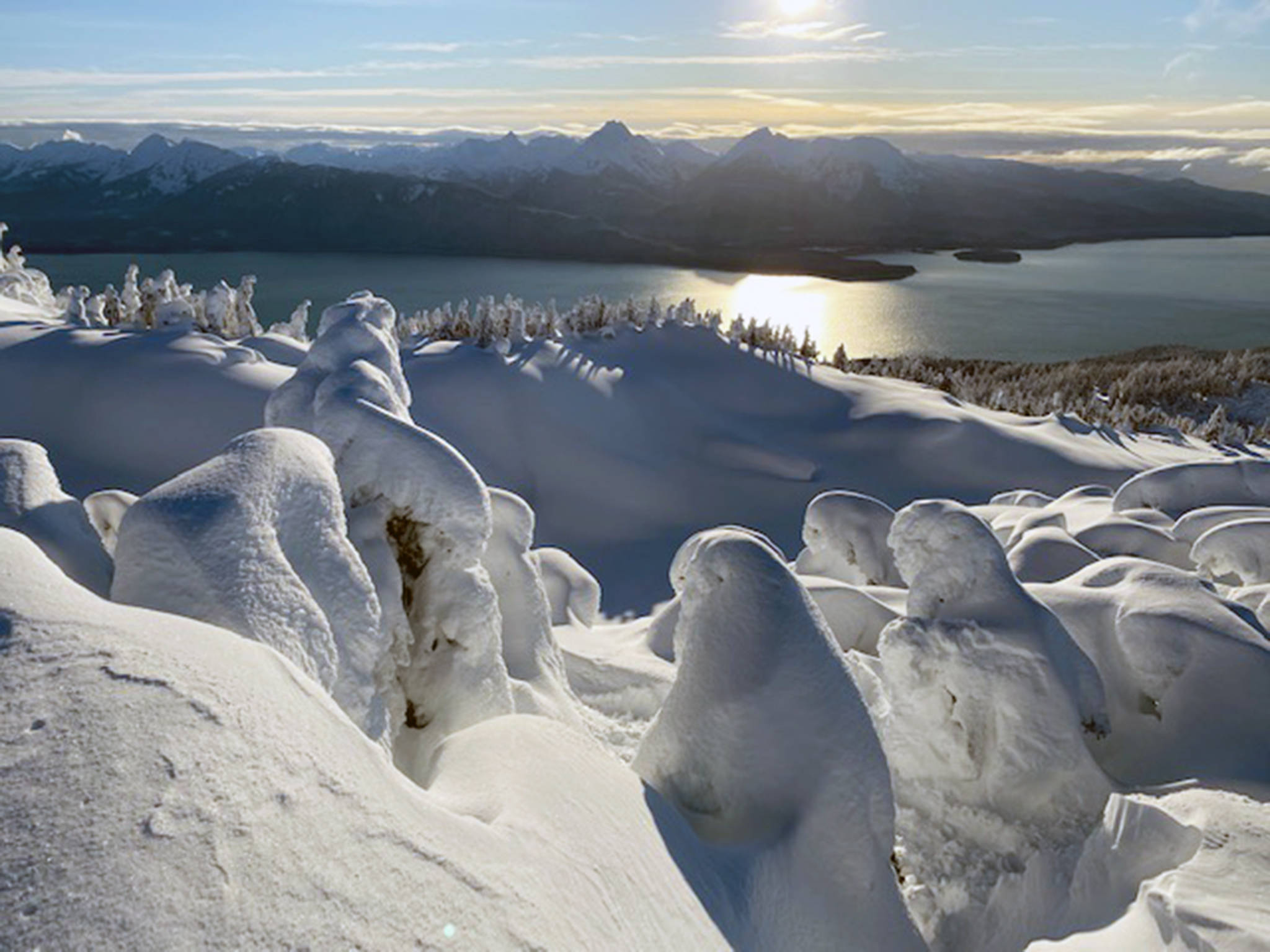 Courtesy photos | Ben Ng “Just me and my shadow”: Ben Ng snaps a picture on Pittman Ridge Thursday morning, Jan. 9. The view shows the Juneau International Airport in the background. Below, his view from Pittman Ridge shows Young’s Bay and Admiralty island in the distance.