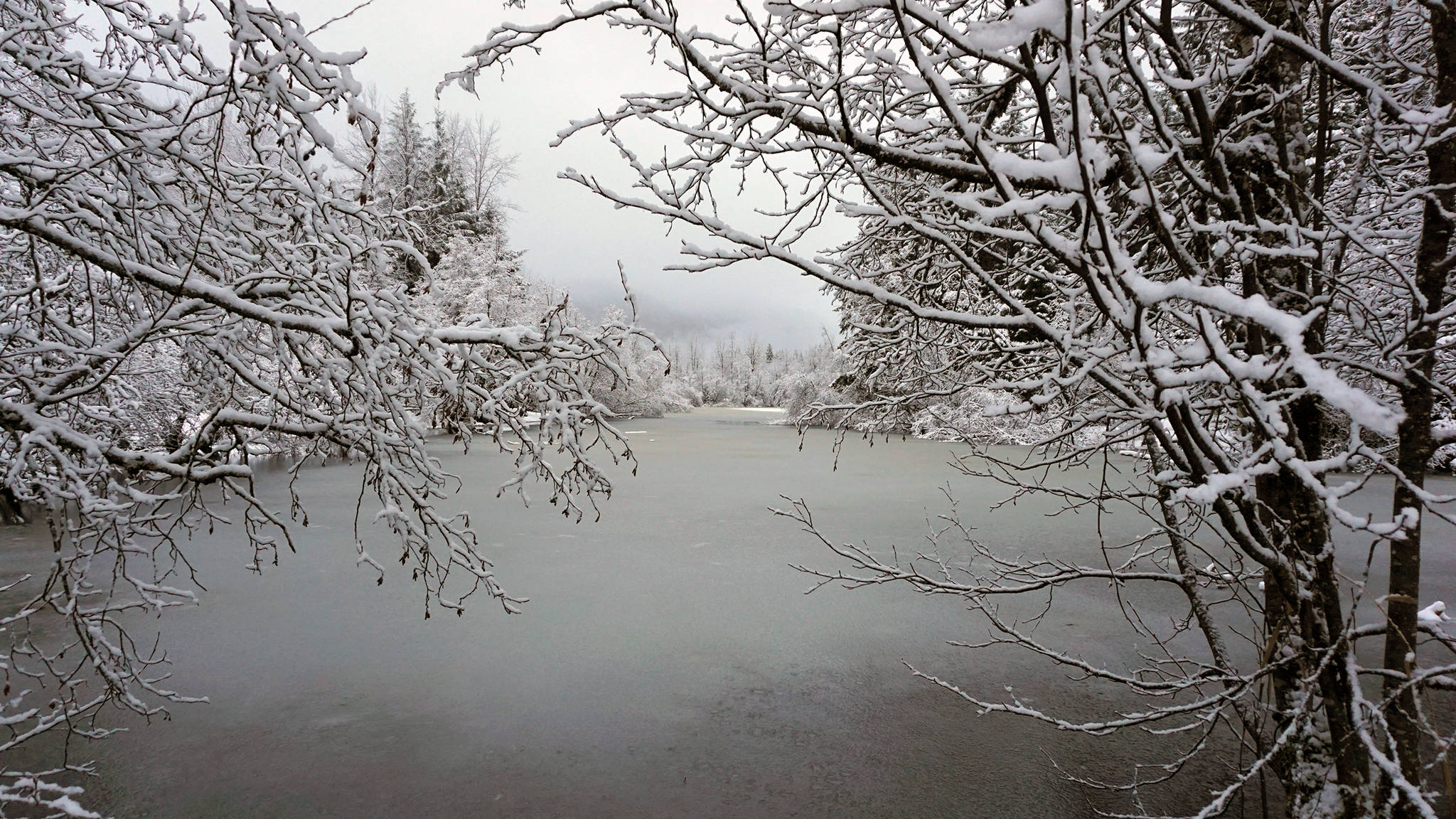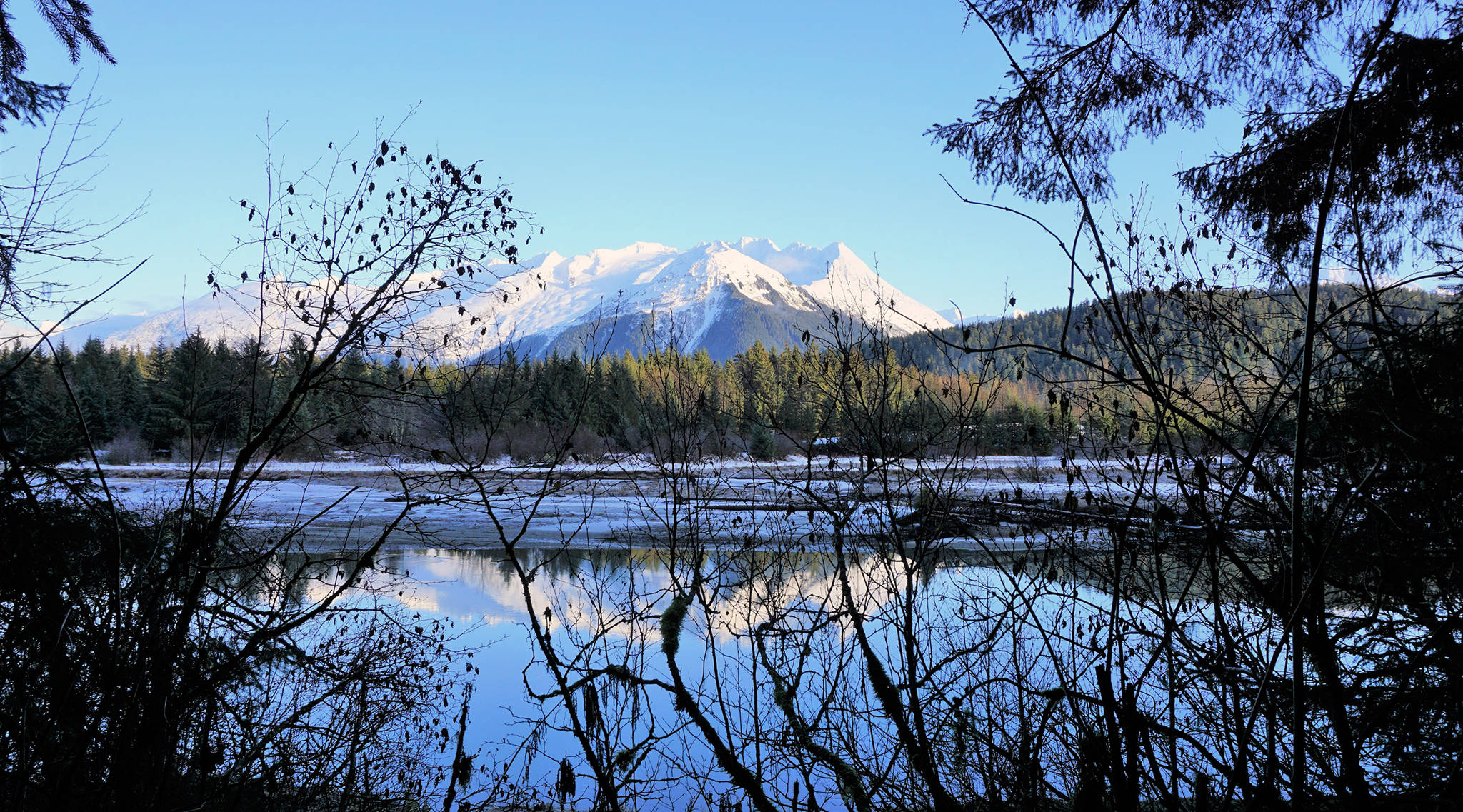 Snowy branches frame a chilly Mendenhall River in this photo taken Dec. 22, 2019. (Courtesy photo | Michael Craig Smith)