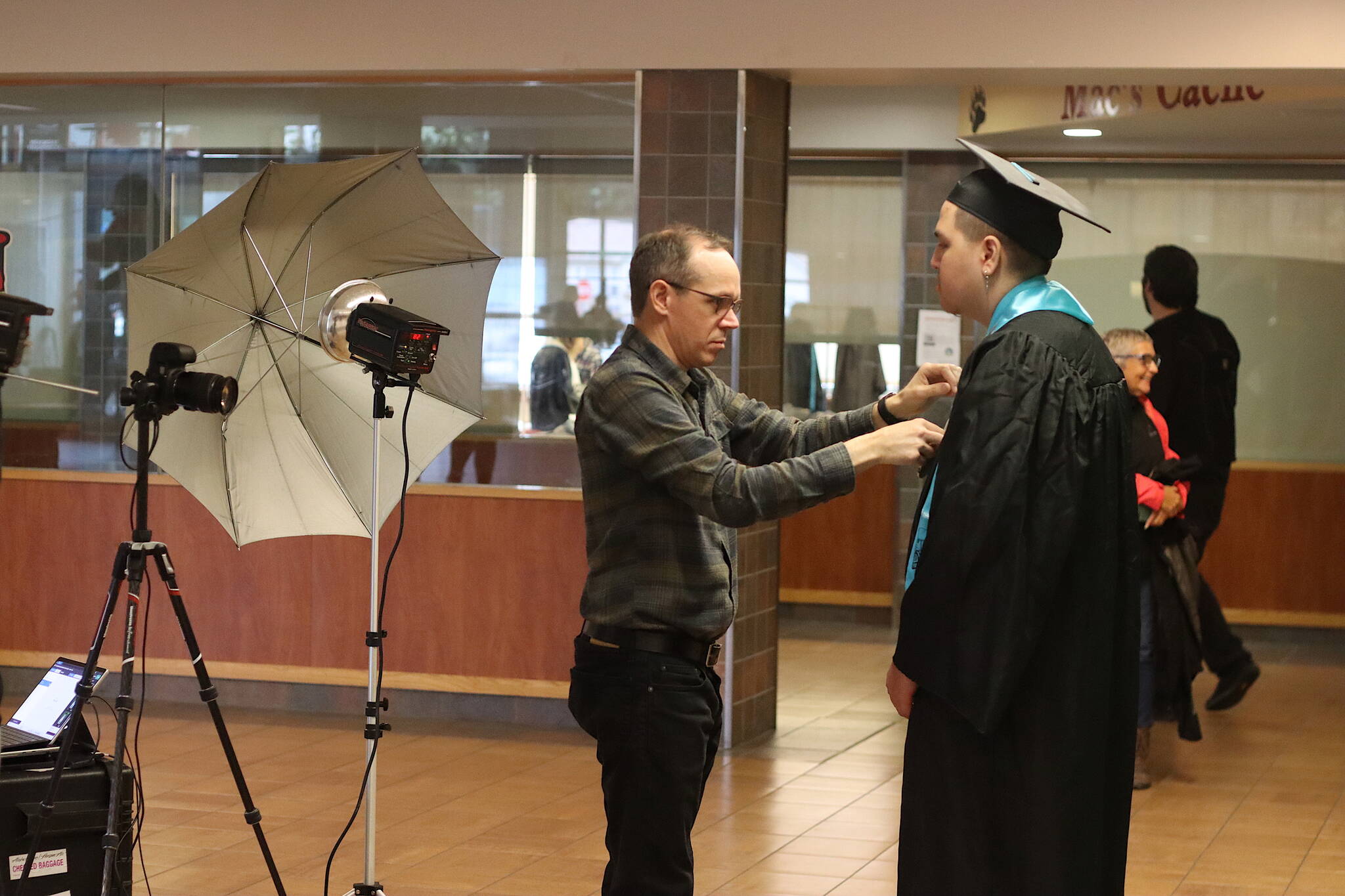 The ceremony commemorated a moving on for some staff as well as students. Principal Kristin Garot, delivering the opening speech, noted “it’s like I finally get to graduate also” since she has been appointed the Juneau School District’s new director of the Teaching and Learning Support Department.
