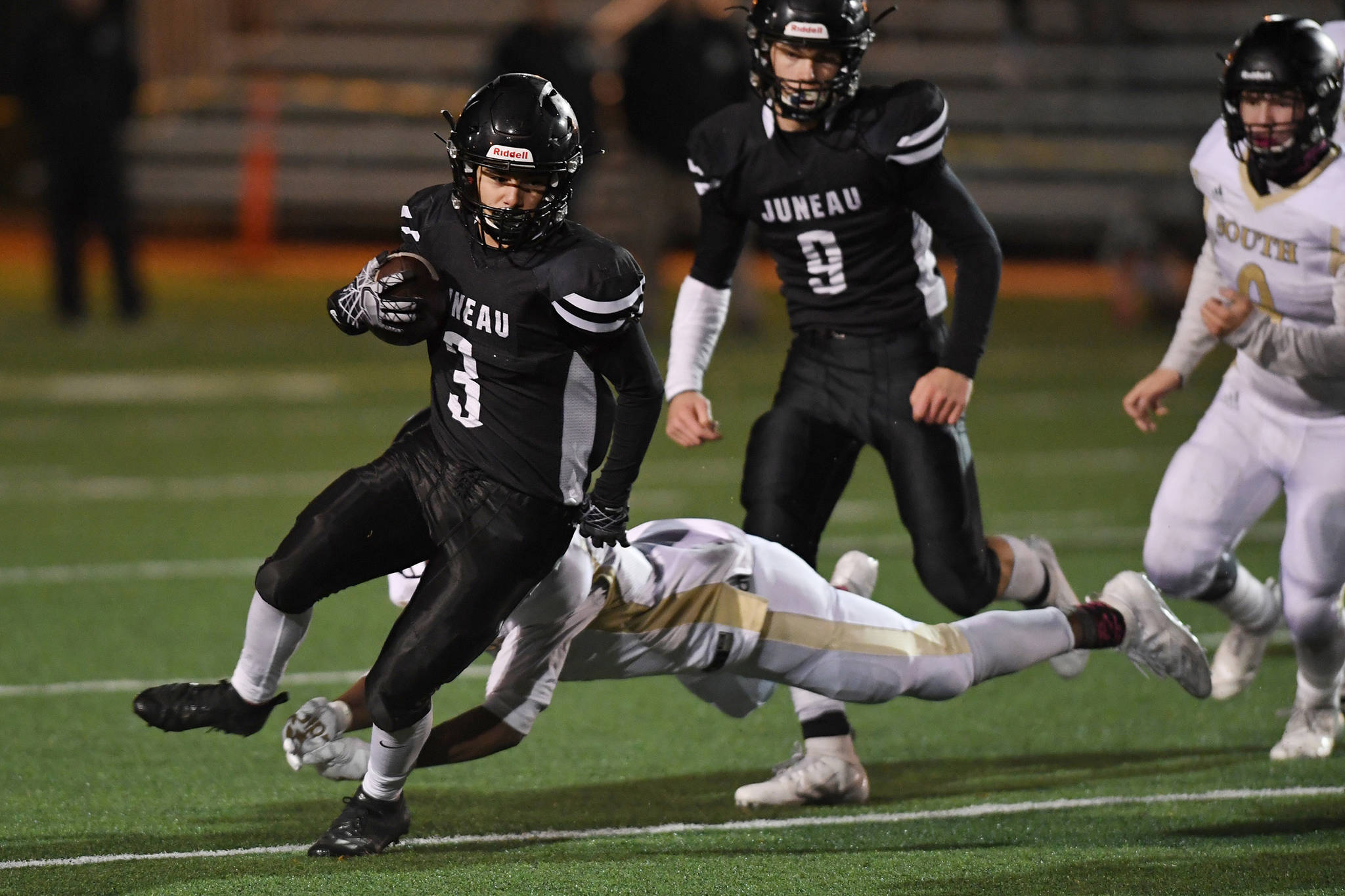 Juneau gave up five touchdowns in the second half to South, the fourth seed out of the Cook Inlet Conference. Wolverines running back Carter Weber-Thomas had four touchdowns in the victory while quarterback Jackson Harmon had three touchdown throws, including at least one each to Jaden and Quincy Heartwell-McCoy.