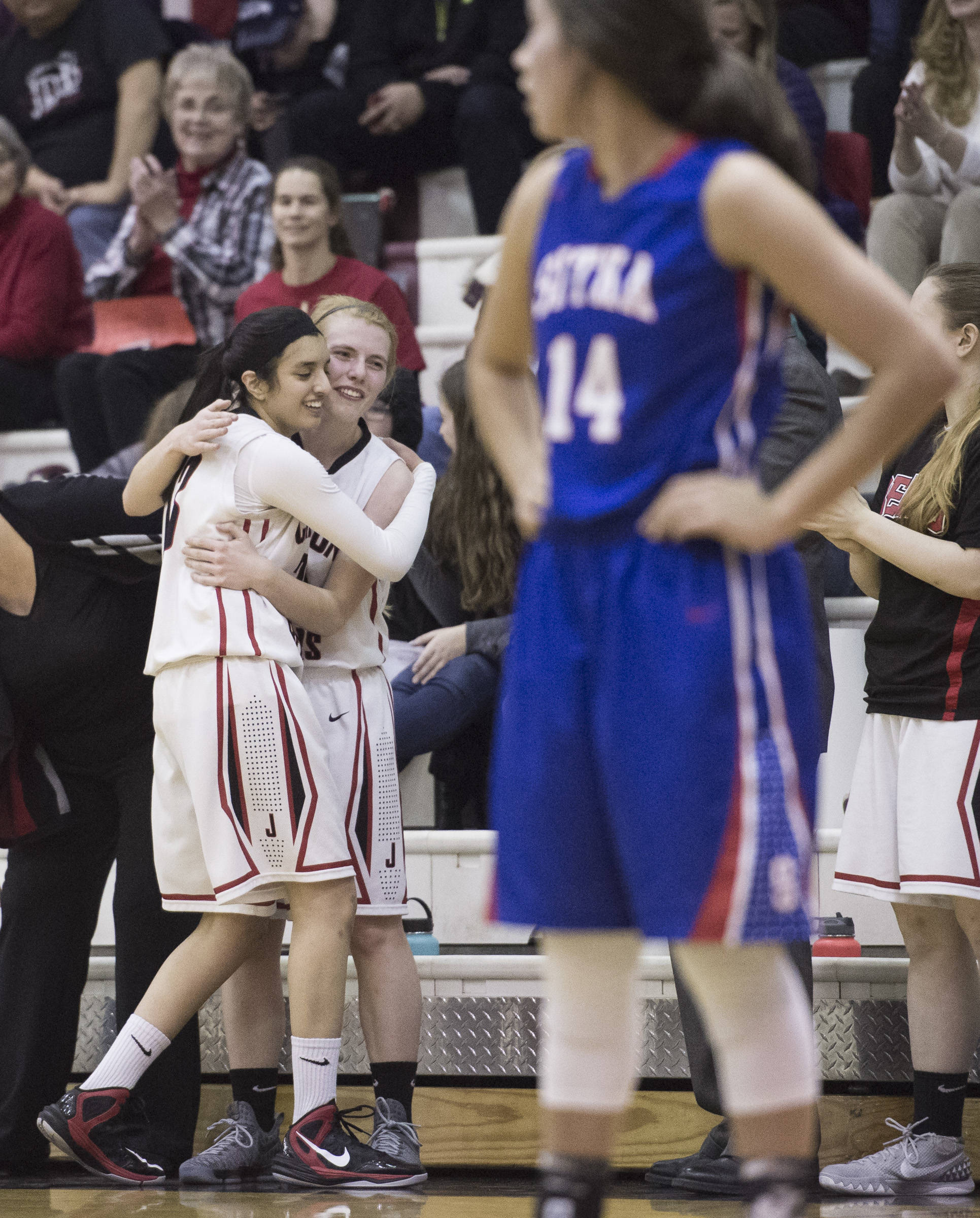 When provided quick outlet passes and breathing space from 3-point range, freshman Kendyl Carson could put up points in hurry. Sophomore Caitlin Pusich was also a threat from 3-point range. Who could forget the two 3’s she made in the final minute in Region V tournament that almost knocked off Ketchikan for good?