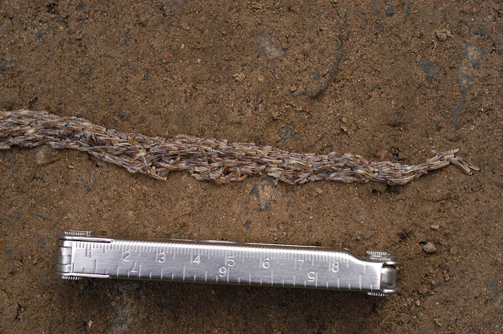Maggie Billington of Ester handed the bag to Sikes. She described the bizarre procession of hundreds of the mysterious larvae she saw crawling over one another, stretched out like a garden hose.