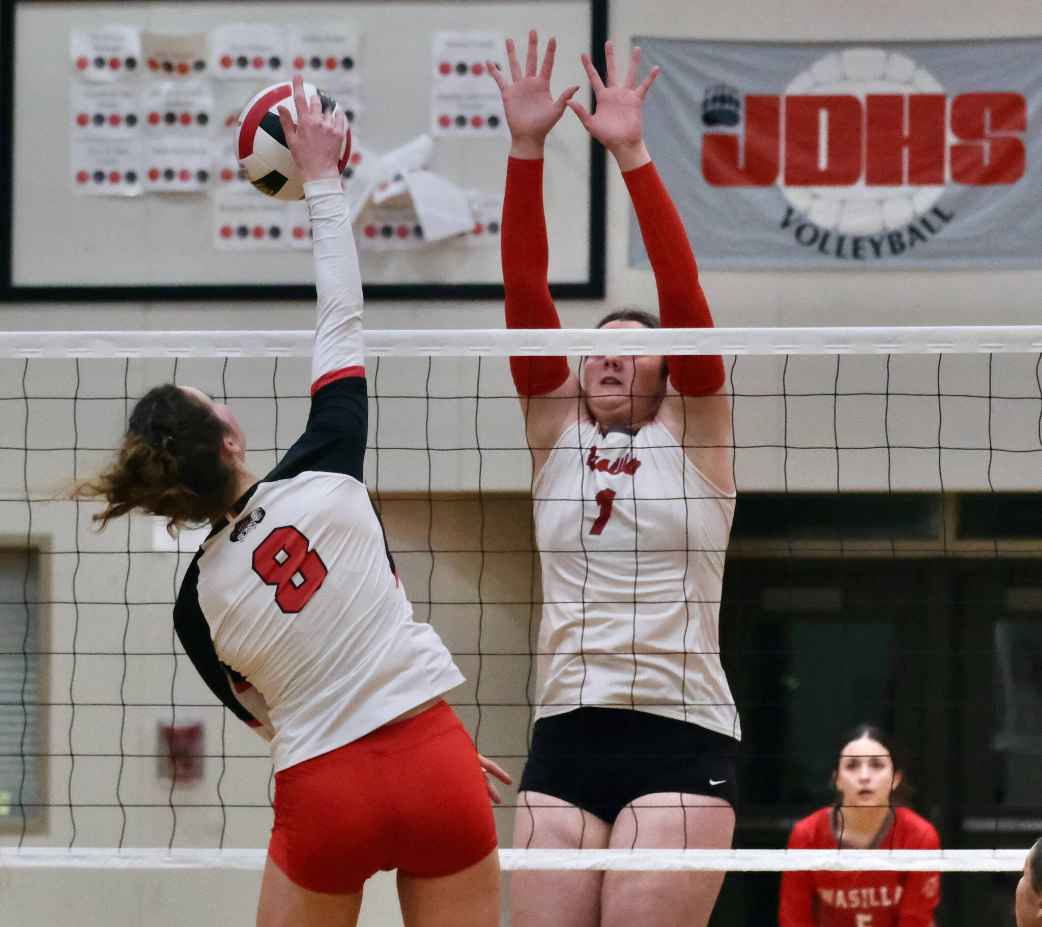 A JDHS miss hit gave Wasilla match point and Hays blocked a shot for the win 25-12.