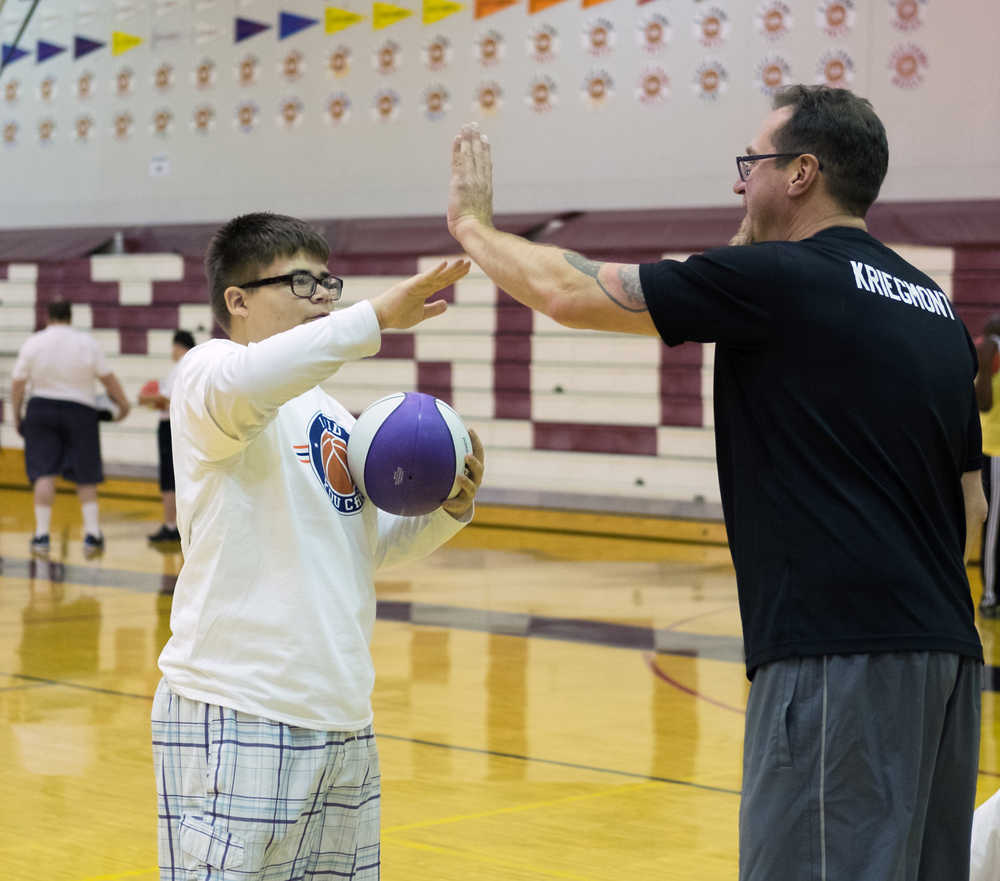 Tammi Birch a participant in this years “I Did. You Can.” Basketball Camp for athletes with special needs shows off one of many smiles that were going on Saturday at JDHS Gymnasium.