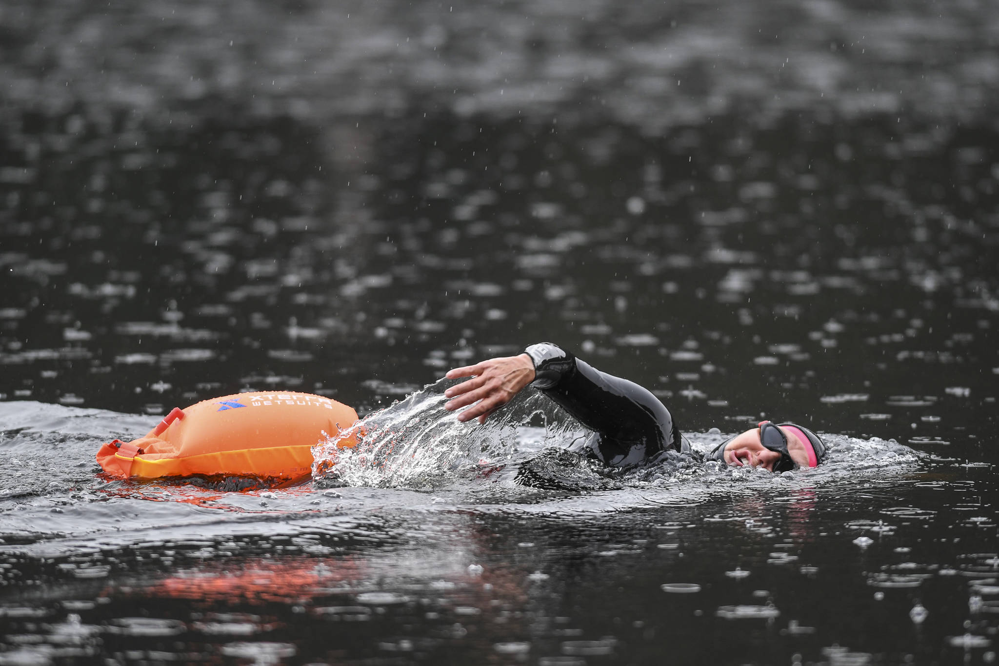 Bursell and others the wear brightly-colored caps and swim buoys in an effort to standout against the black water. She always recommends swimming with a buddy, and letting boaters know where to expect them. In addition, she recommends staying on the perimeter of the lake, inside white wake buoys.
