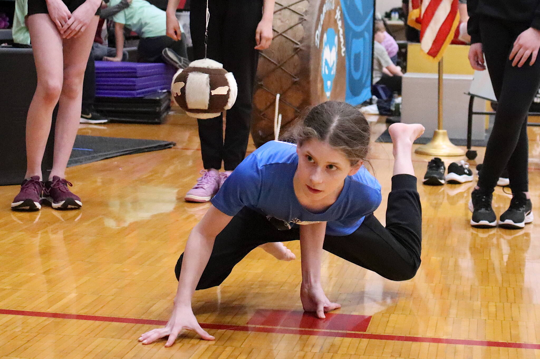 Participants in middle school, high school and open divisions competed in 12 events, including three variations of high kicks, two types of distance jumps, archery, a wrist carry to see how long a person can bear their own weight with one arm, and a seal hop involving moving across the floor in a push-up position (which differs for male and females).