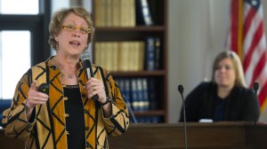 Hilary Morgan, Executive Director of the YWCA Alaska, gives a report on pay for women in Alaska during…