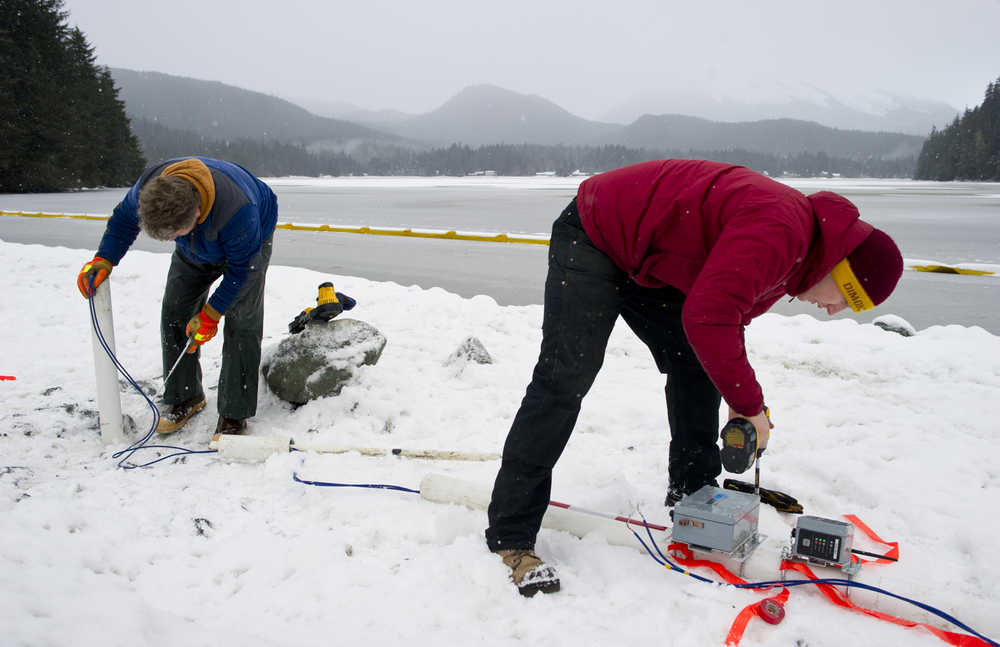 Icebergs rest on the frozen Mendenhall Lake near the glacier on a recent afternoon.… Continue reading