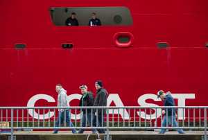 Kirk Thorsteinson holds up his son, Craig, 5, so he can look through the 20-power binoculars on the bridge of the polar icebreaker U.S. Coast… Continue reading